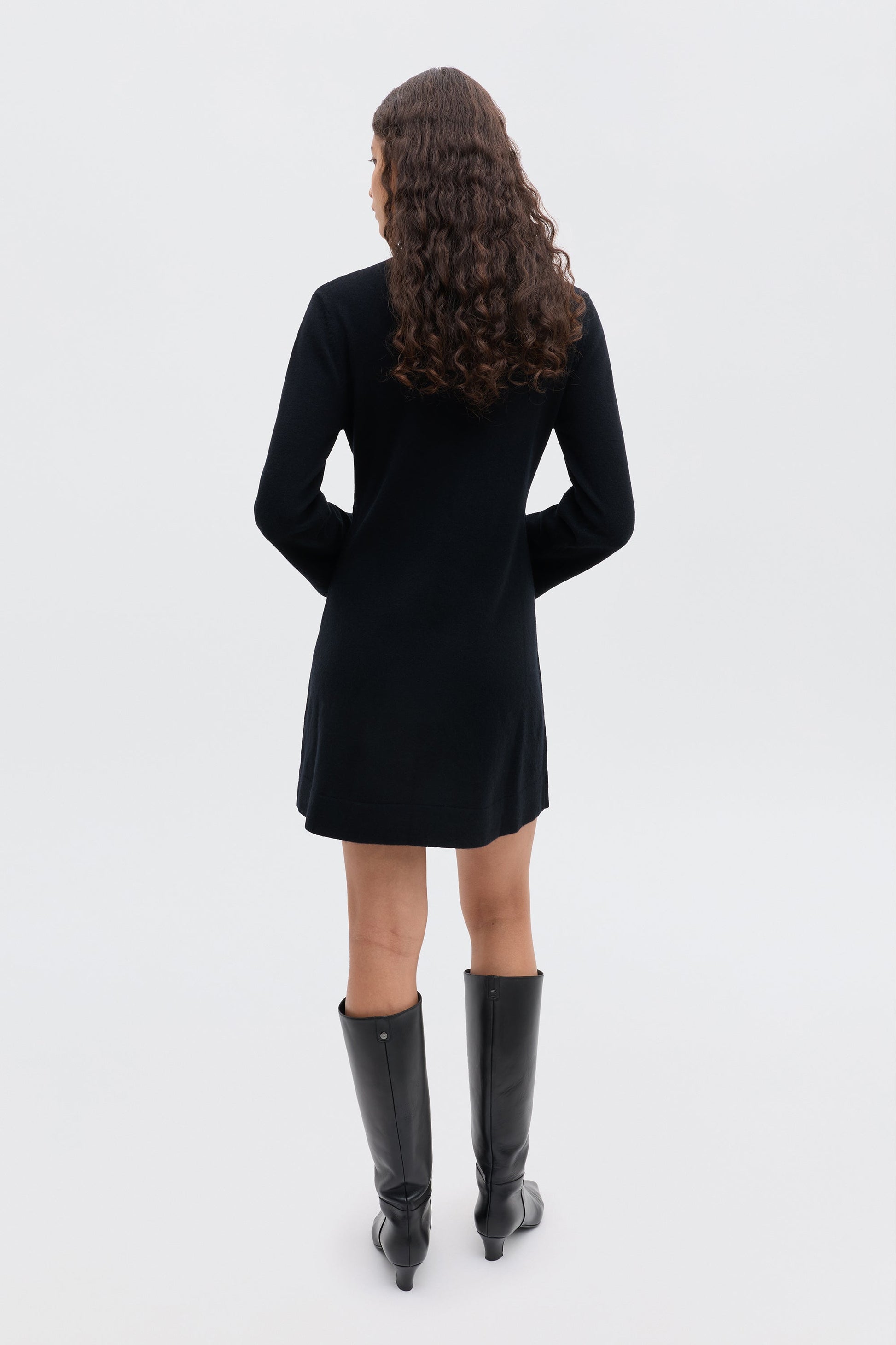 The perfect winter LBD, Aly has a sixties babydoll feel with its roll neck and buckled waist. We've used a gorgeous wool and cashmere-blend knit that's elegant day or night.