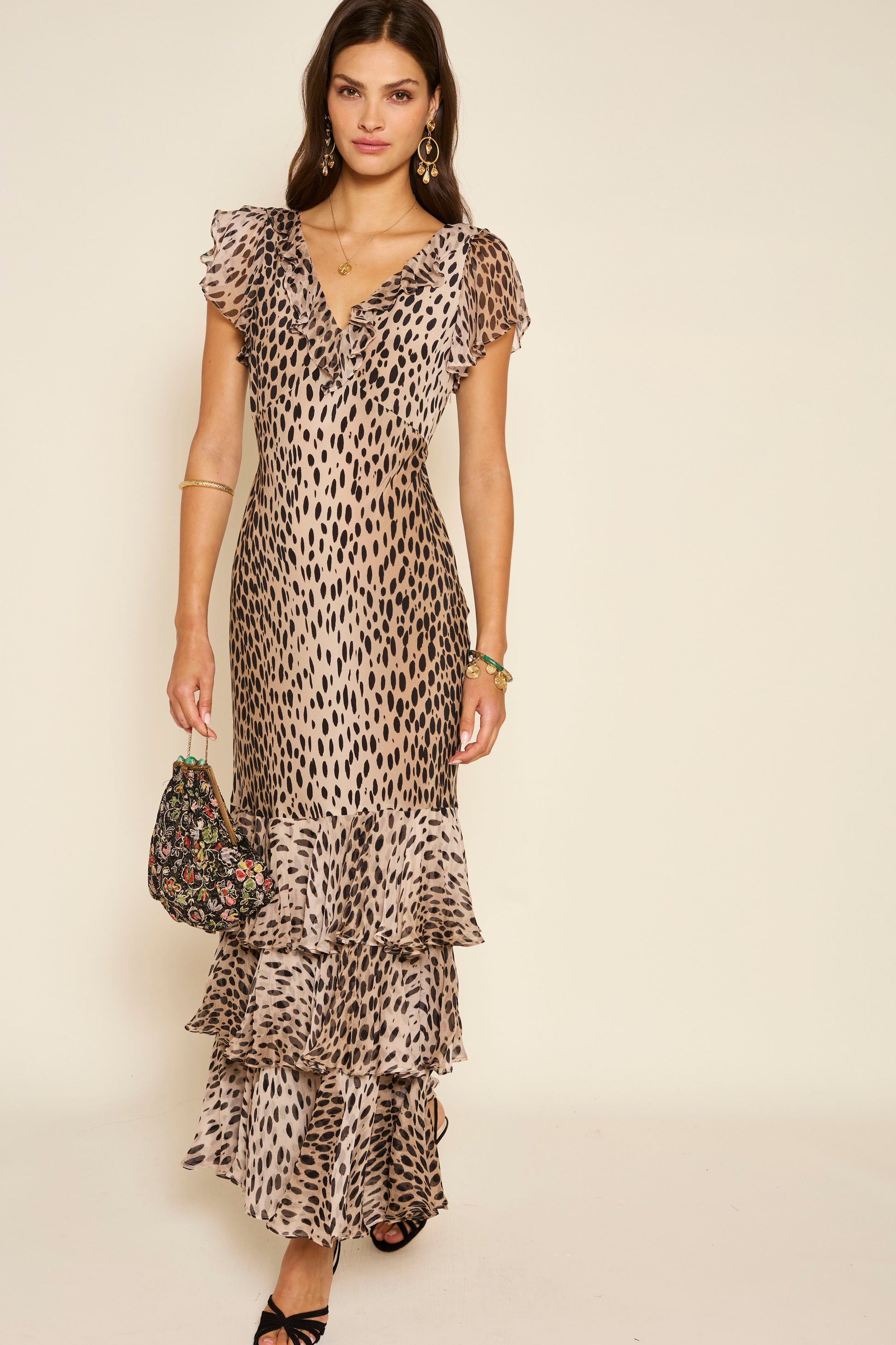 Amelle is the perfect 1930s-inspired gown, cut on the bias so the silk crepe de chine skims over the hips. The fluted sleeves and V-neckline are ideal if you don't want anything too revealing.