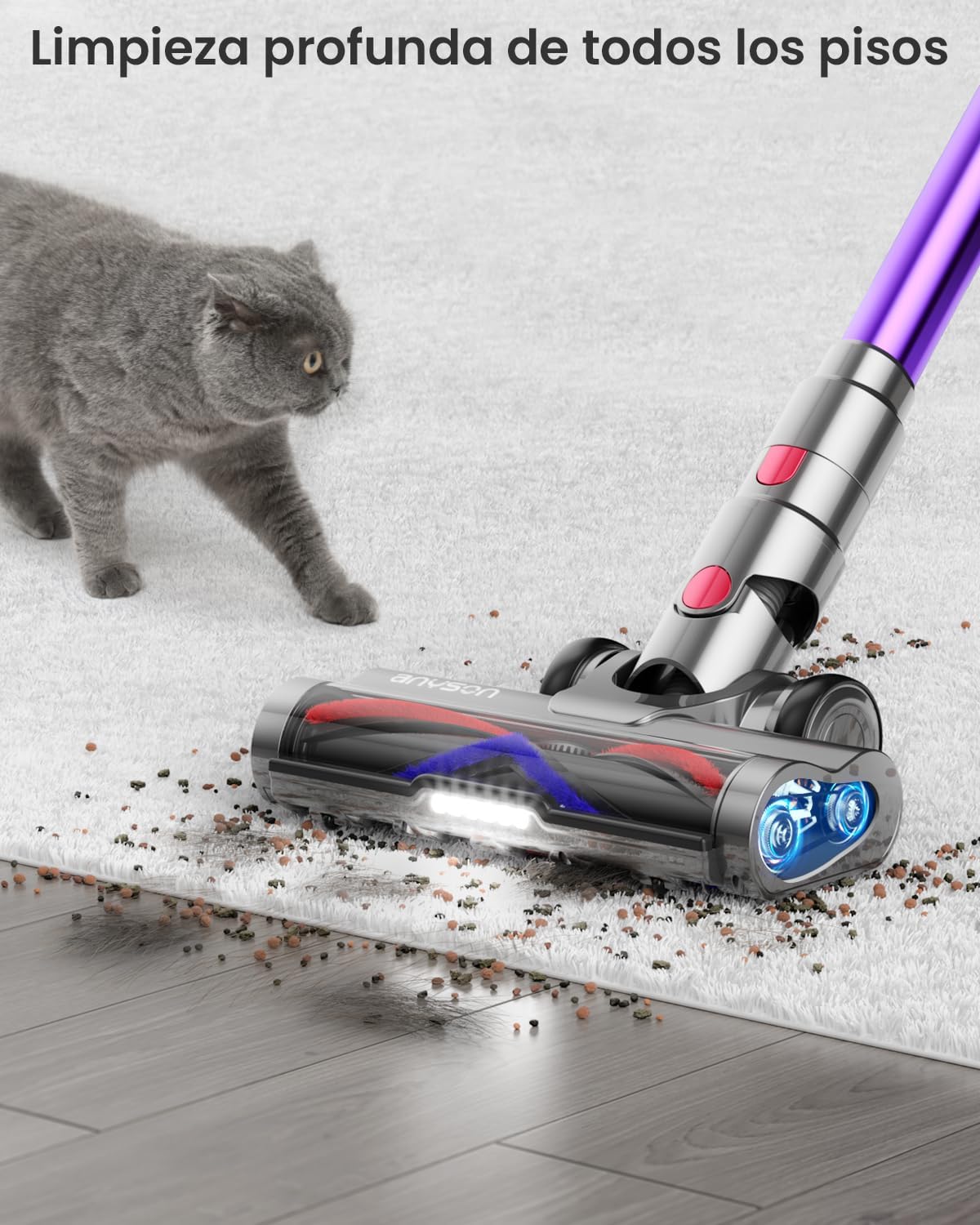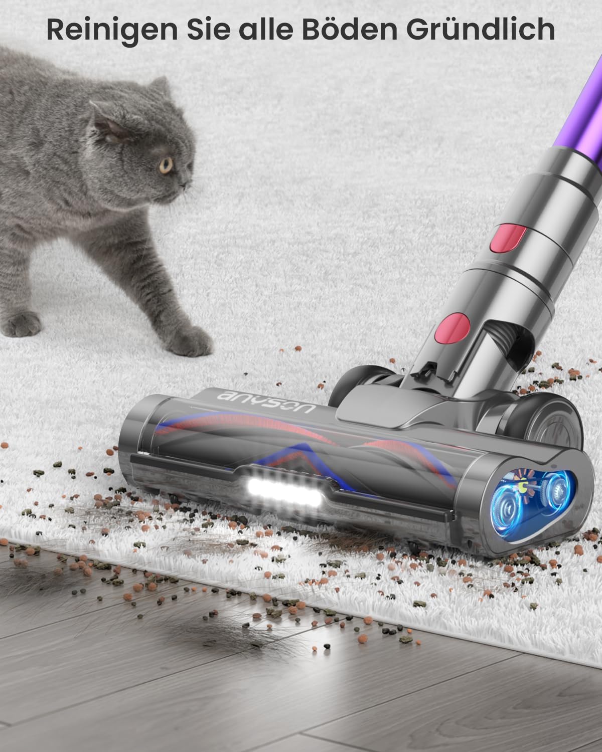 - 【V-förmige Anti-Tangle-Bürste】Der Akku Staubsauger Tierhaare ist mit einer neuen V-förmigen Rollenbürste und einem 270° flexiblen Bürstenkopf ausgestattet, der die Wahrscheinlichkeit von Haarverfilzungen minimieren und problemlos Tischbeine, Wände und den Boden erreichen kann des Bettes und anderer Orte. Helle LED-Leuchten können Staub beleuchten, sodass Sie keinen Müll