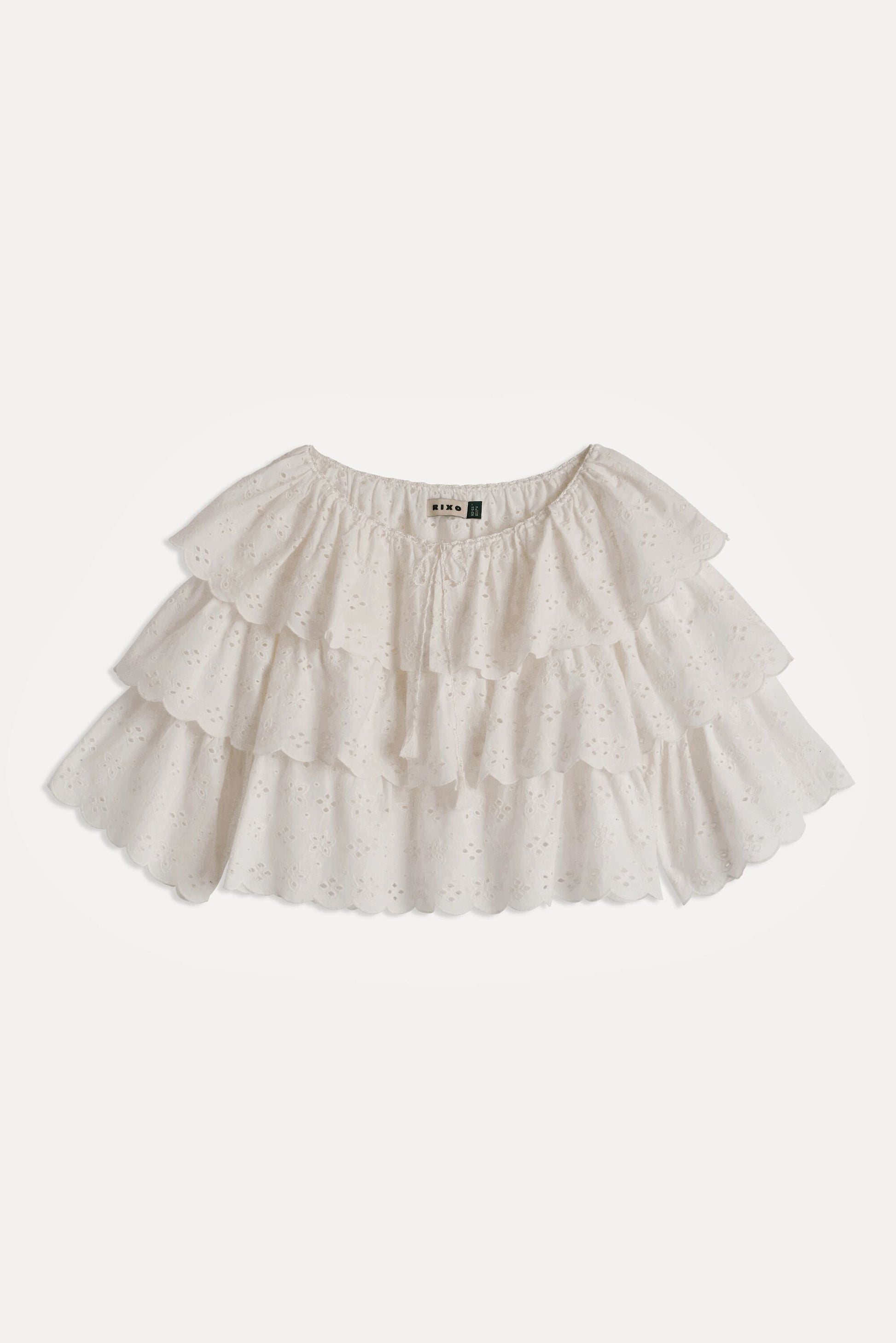 We designed the broderie anglaise of this cotton-voile Caserta top in-house to get it exactly right. The shape is layered for a bohemian, vintage feel and finished with hand-crocheted trims.