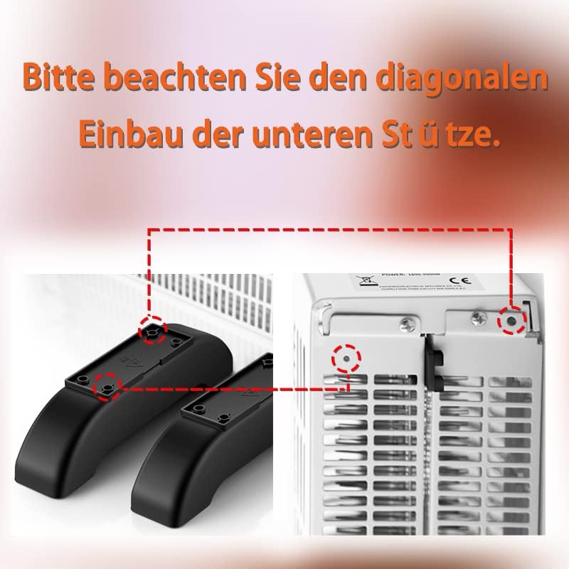 - 3 Einstellungen der Heizleistung:750W/1250W/2000W (Einstellung 1: 750W, Einstellung 2: 1250W, Einstellung 3: 2000W. Hinweis: Einstellung 3 bedeutet, dass beide Schalter eingeschaltet sind)