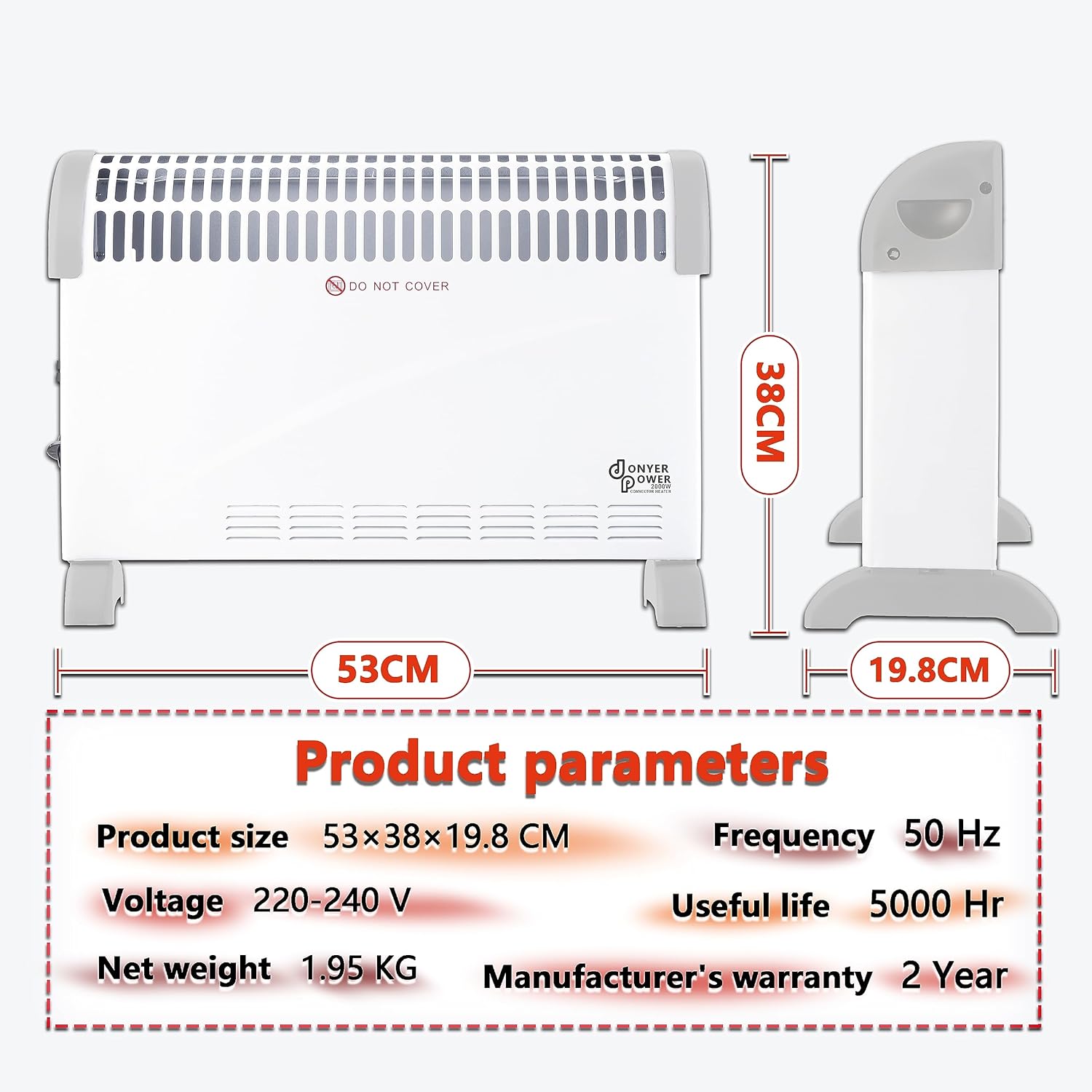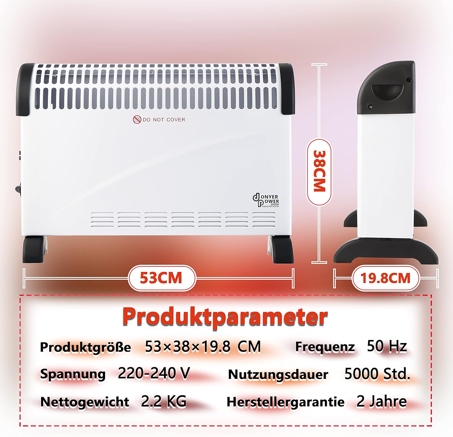 DONYER POWER Konvektor-Heizkörper 2000W Raumheizung mit Einstellbarem Thermostat Nicht Vorjähriges Inventar