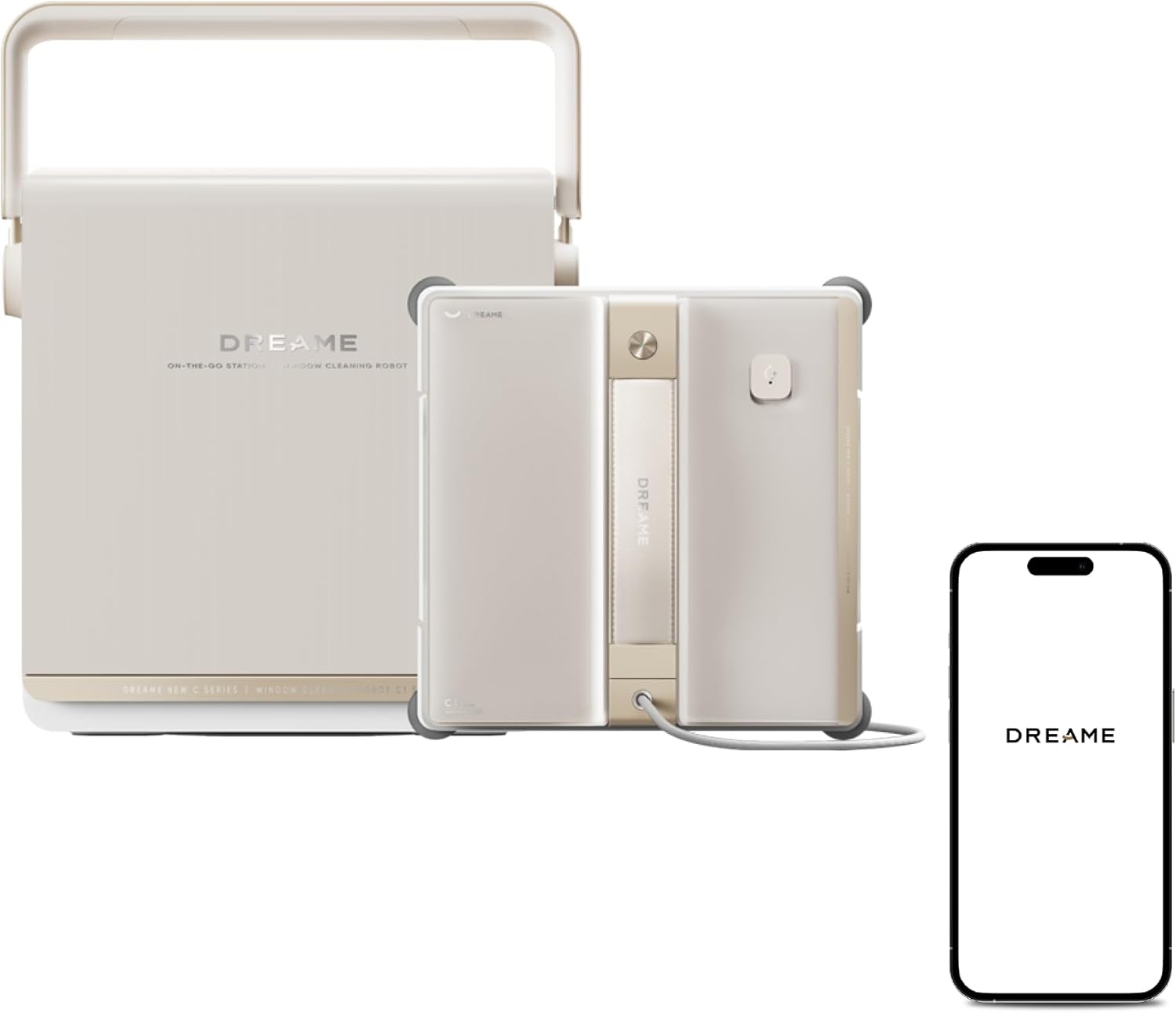 dreame C1 Station Fensterputzroboter, Rundum-Sicherheitskonzept, Mobile Station, automatischer Kabeleinzug, CornerClean-Technologie, Dual-Spray-Technologie, intelligente Planung des Reinigungswegs