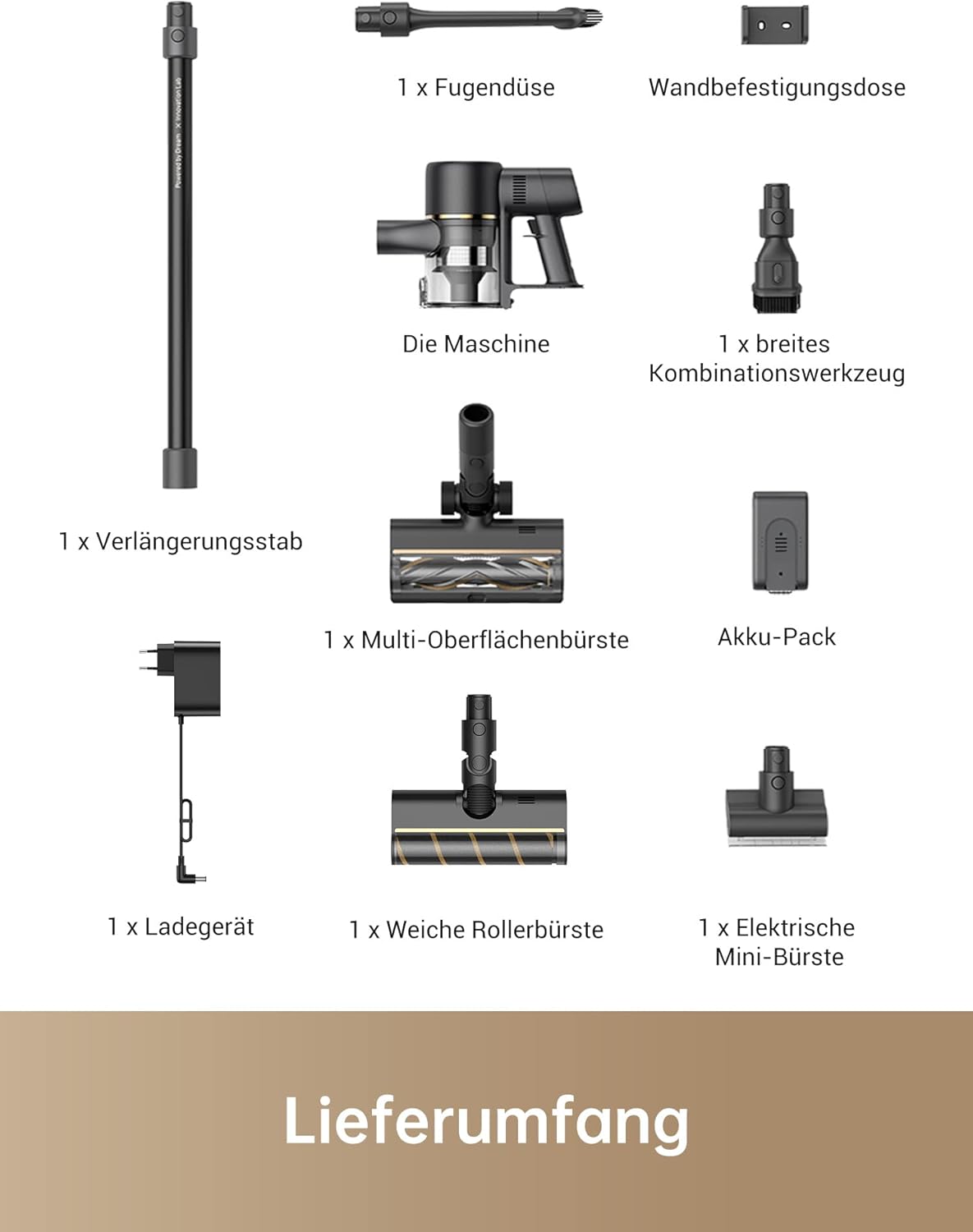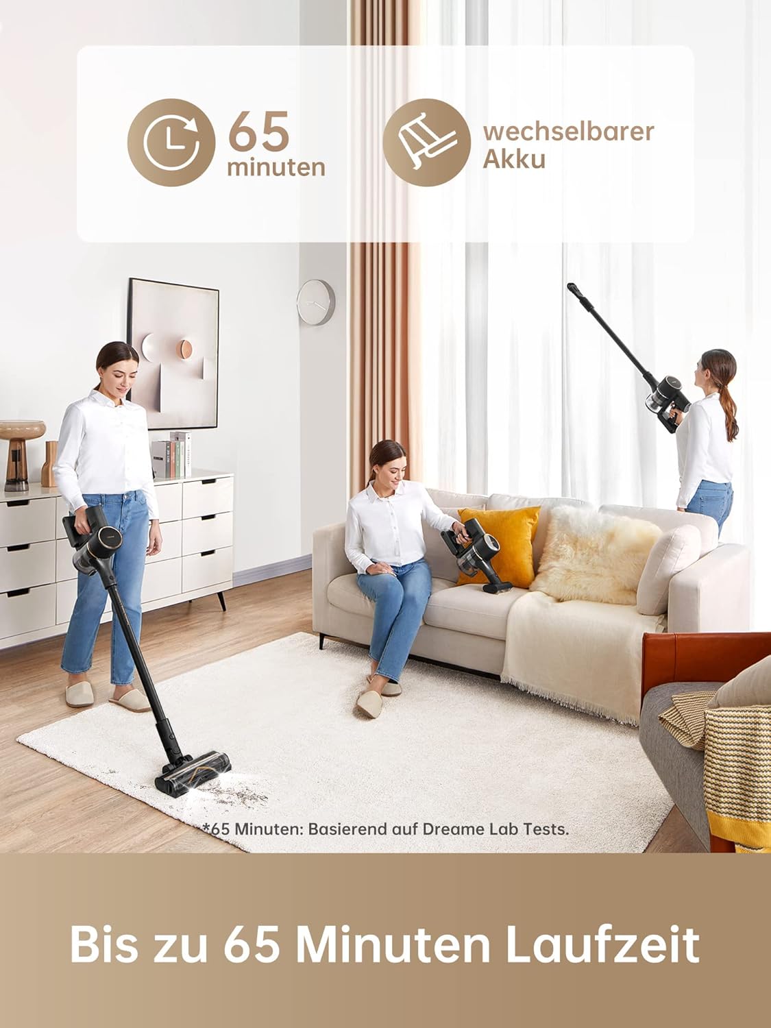 - 60 Min Laufzeit: Reinigen Sie mit dem des Dreame R10 Ihr ganzes Haus in einem Zug mit 60 Min Laufzeit. Leistungsstarker Akku sorgt für ununterbrochene Reinigung, so dass Sie auch große Reinigungsaufgaben bewältigen können, ohne sich Sorgen machen zu müssen, dass Ihnen der Strom ausgeht. Sie erhalten ausgedehnte Suagleistung ohne Pausen