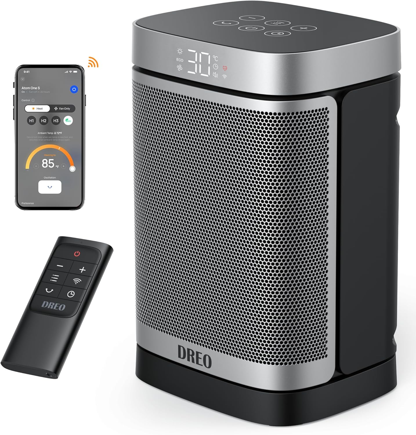 Dreo Heizlüfter Energiesparend Klein, 1500W Heizung Elektrisch mit Thermostat, 70° Oszillierend Elektroheizung, PTC Keramik Heizlüfter Leise, ECO-Modus, 12-Std-Timer, Überhitzungs- & Kippschutz