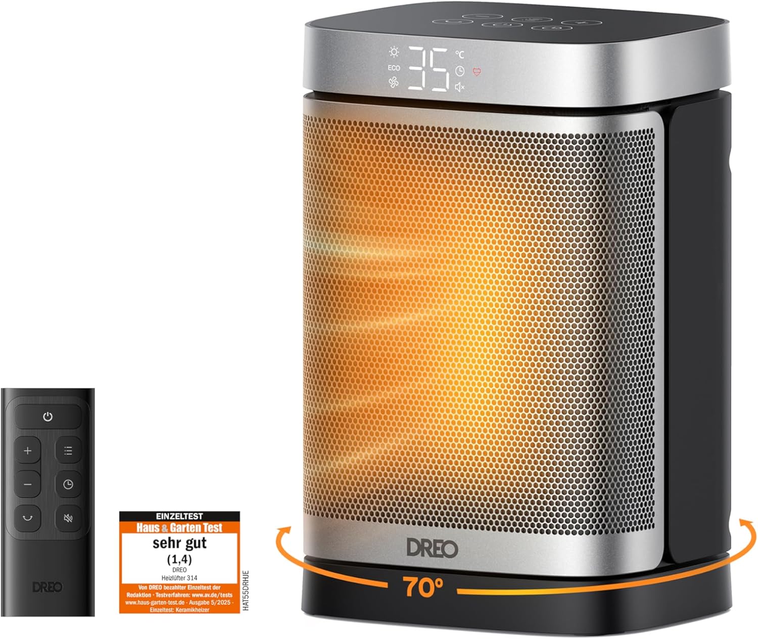 - 70° breite Oszillation – Exklusives Trackball-System verteilt die Wärme leise (nur 40 dB) und gleichmäßig im Raum. Mit 1–12 h Timer und automatischer Display-Abschaltung für ungestörten Schlaf