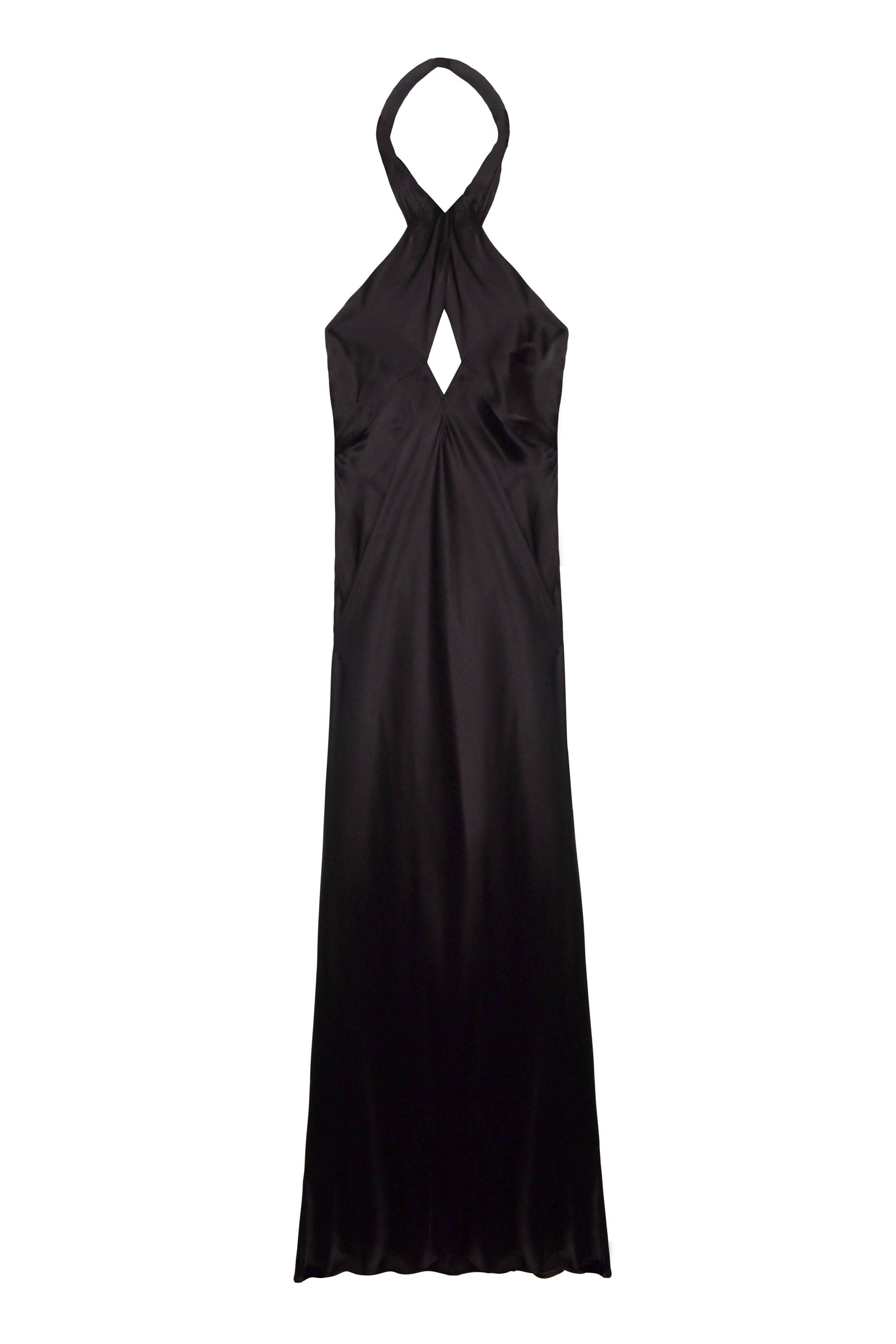 This Dune gown is simple yet striking. Perfect for black tie dress codes, it's made from luxurious silk-satin in a halterneck silhouette that reveals a flash of skin at the bust. It's inspired by a vintage Cher outfit we loved.
