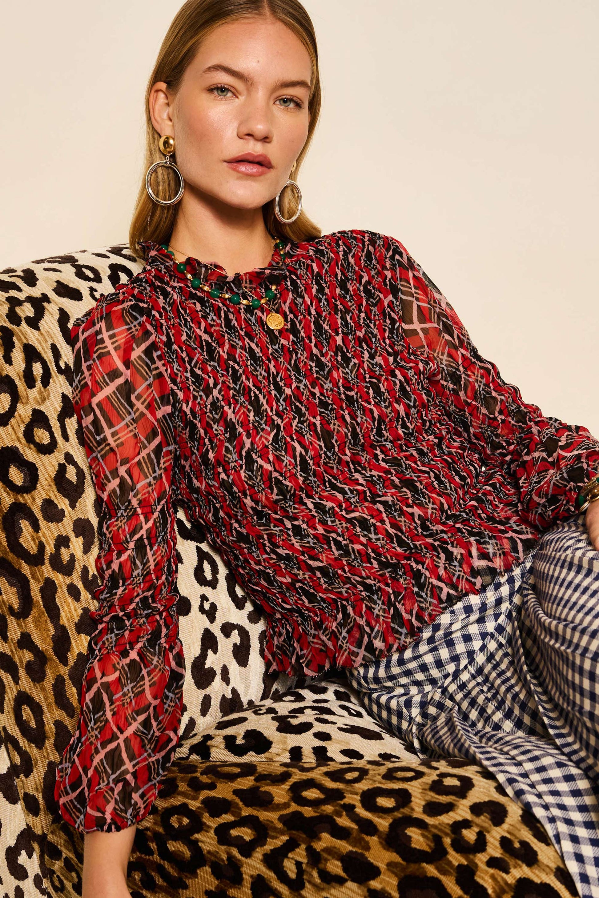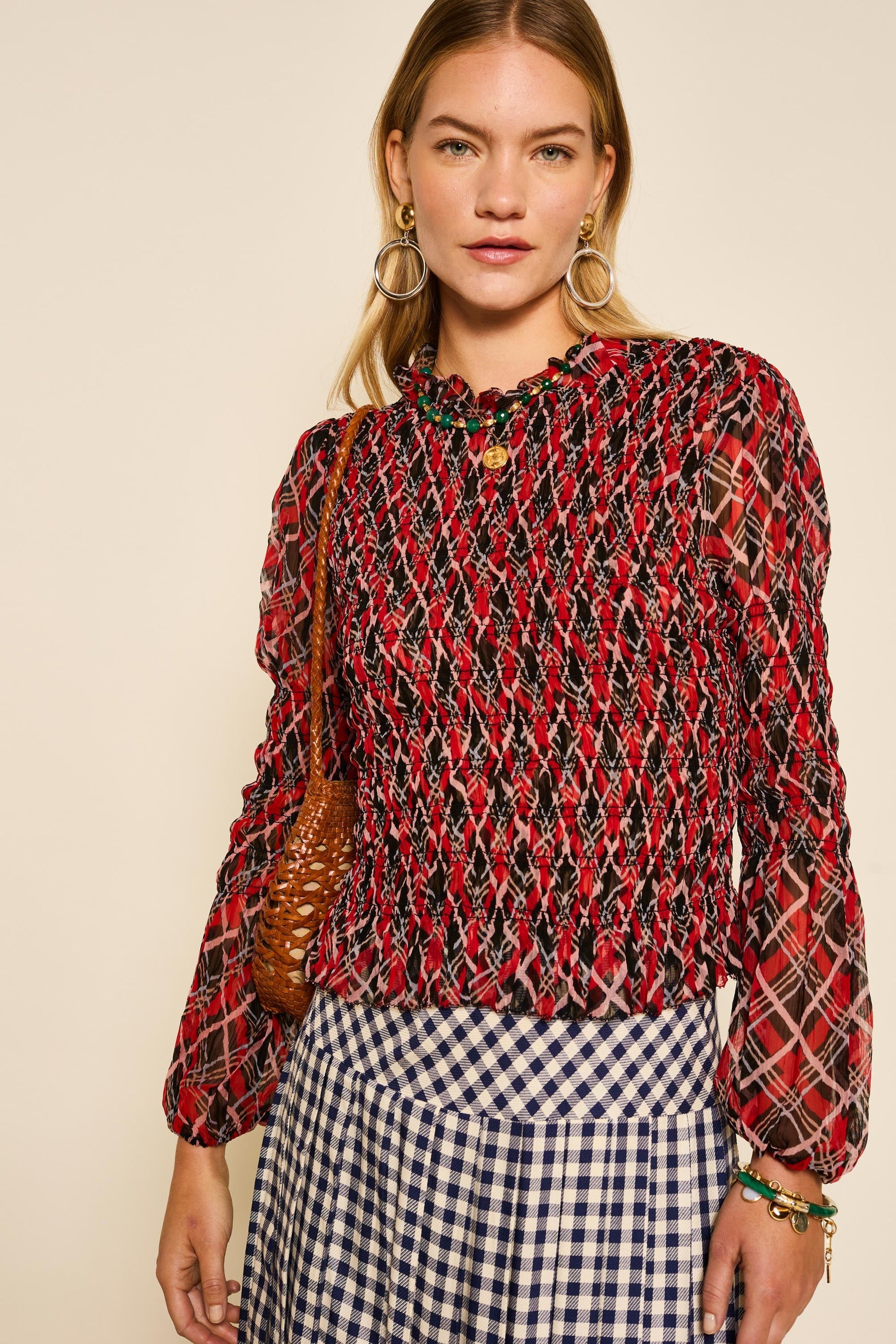 This Gardenia top is based on a vintage shirred blouse. Easy to dress up as well as down, it's made from chiffon that feels lovely and lightweight, with smocking for structure. Tuck it in or wear it loose with jeans.