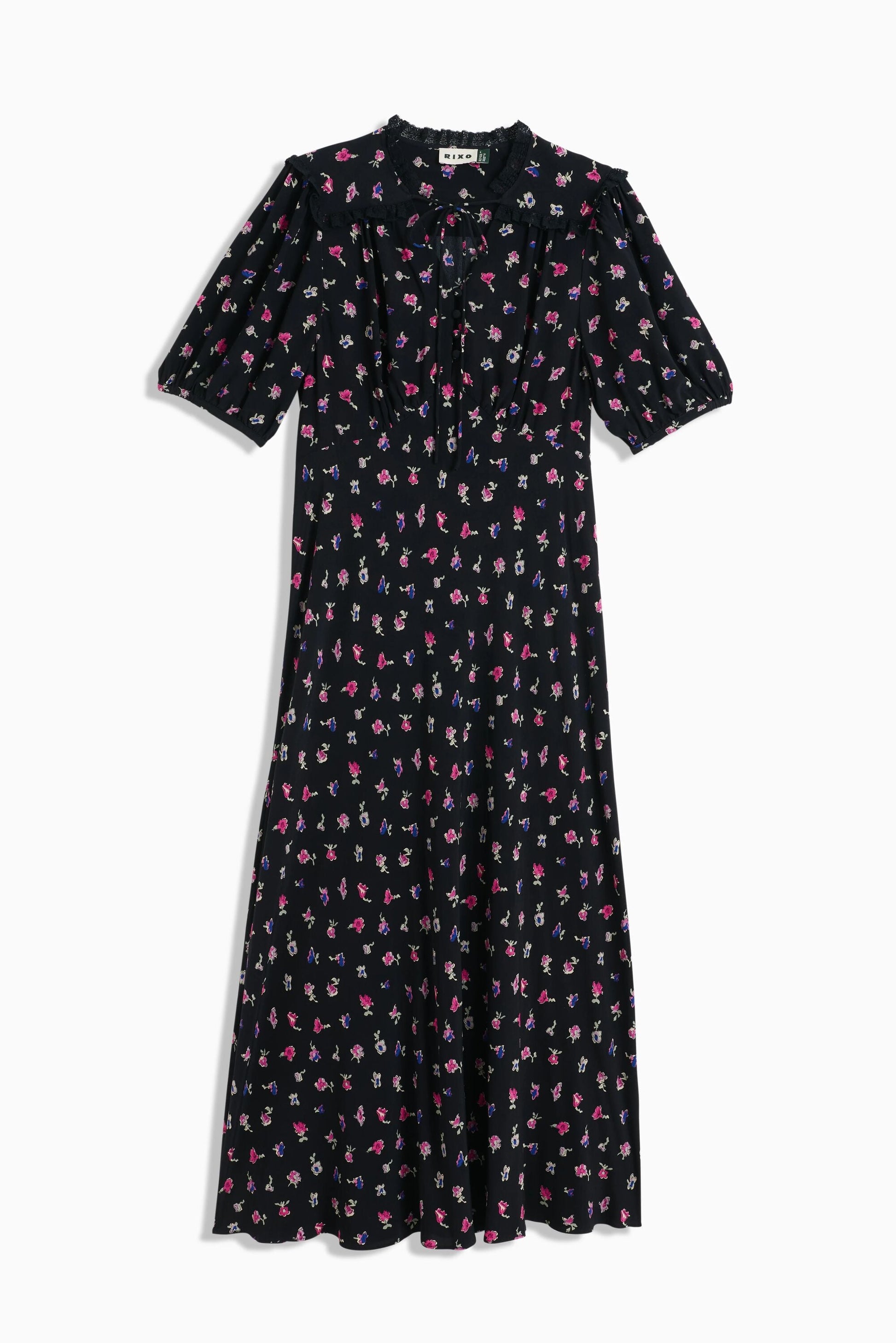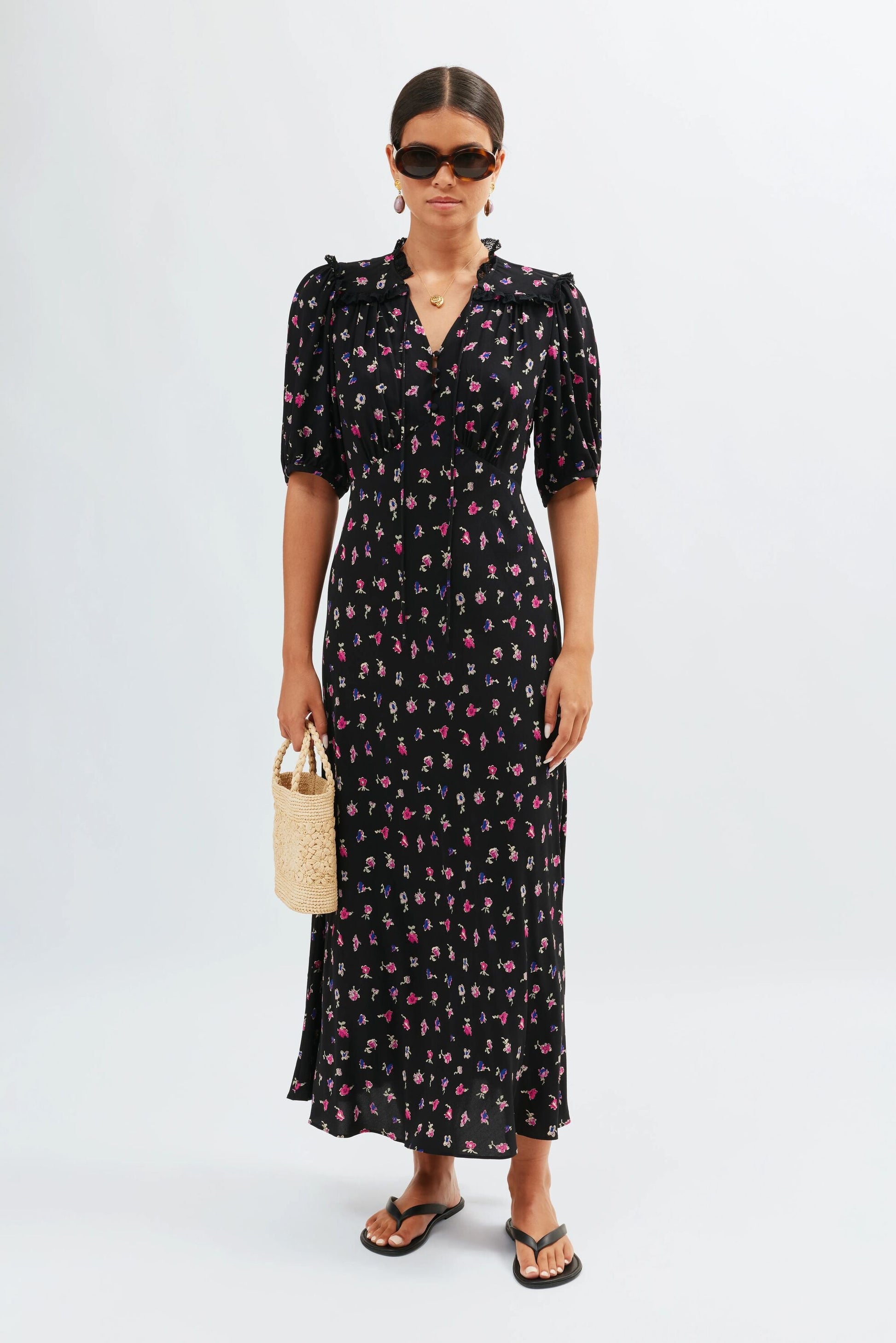 Our new Gwen dress oozes everyday elegance. Featuring disty floral prints, inspired by vintage patterns — this is the ultimate day to night classic. Style yours with our beautiful gold-plated Taelia shell necklace.