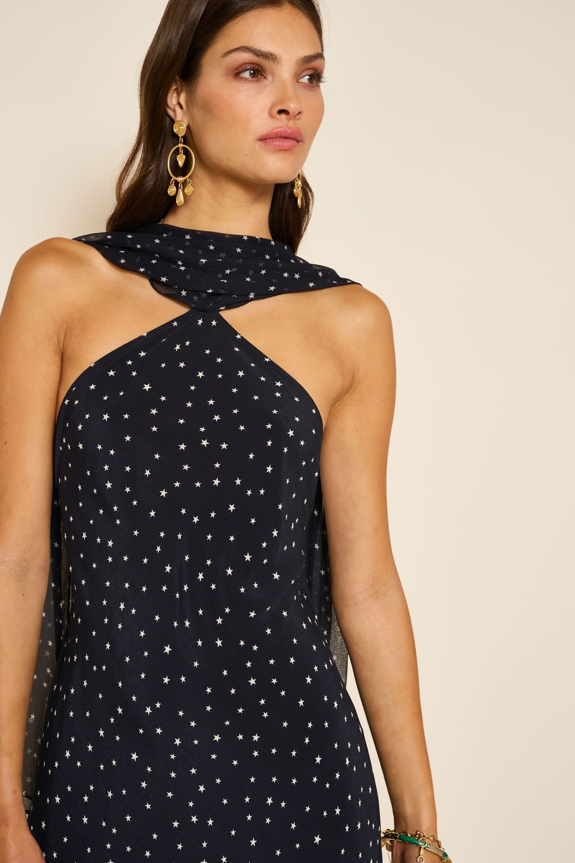 Make an impression in our gorgeous silk Hayley dress. It's made from silk crepe de chine and comes with a detachable georgette scarf that looks so striking when it trails down the open back.