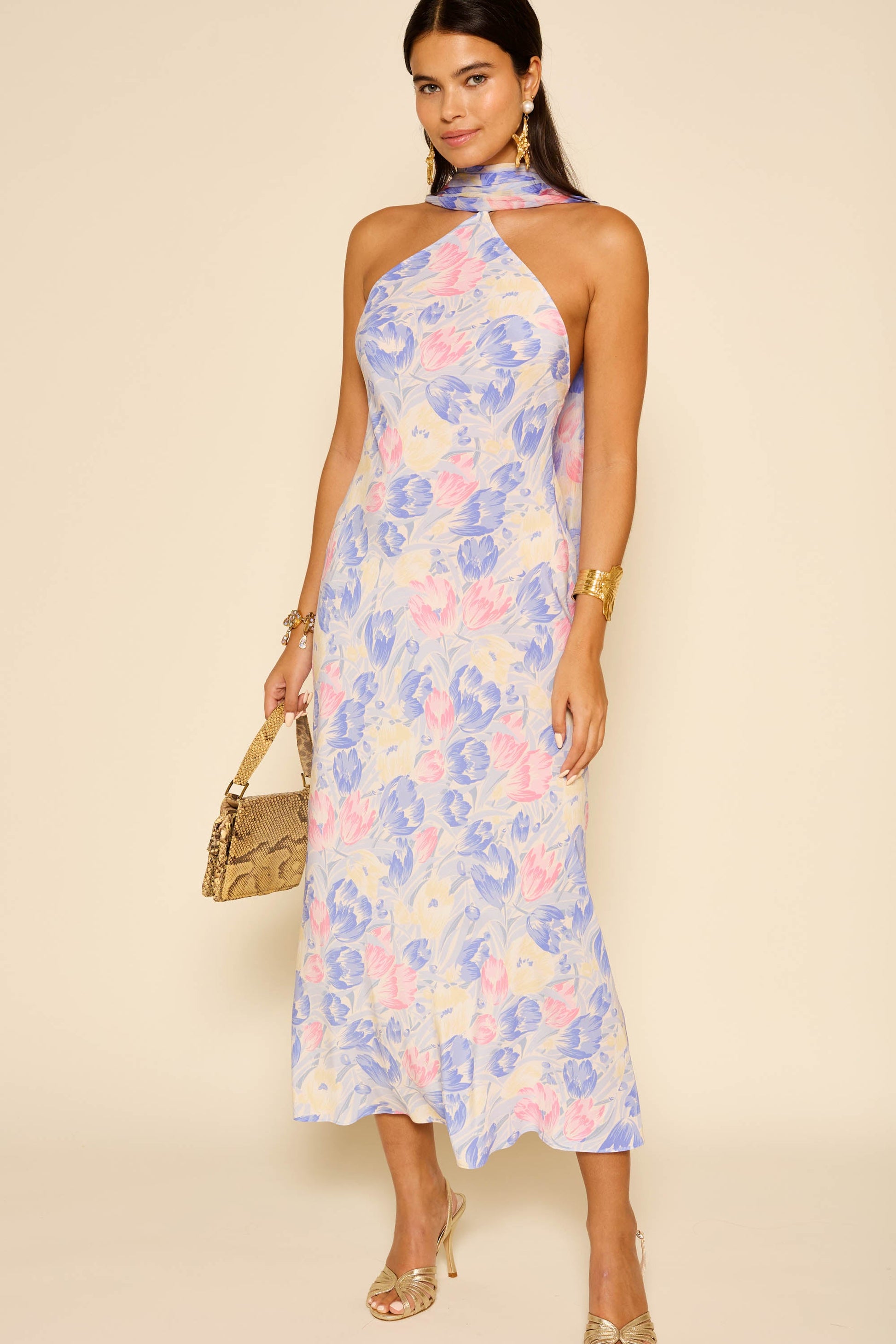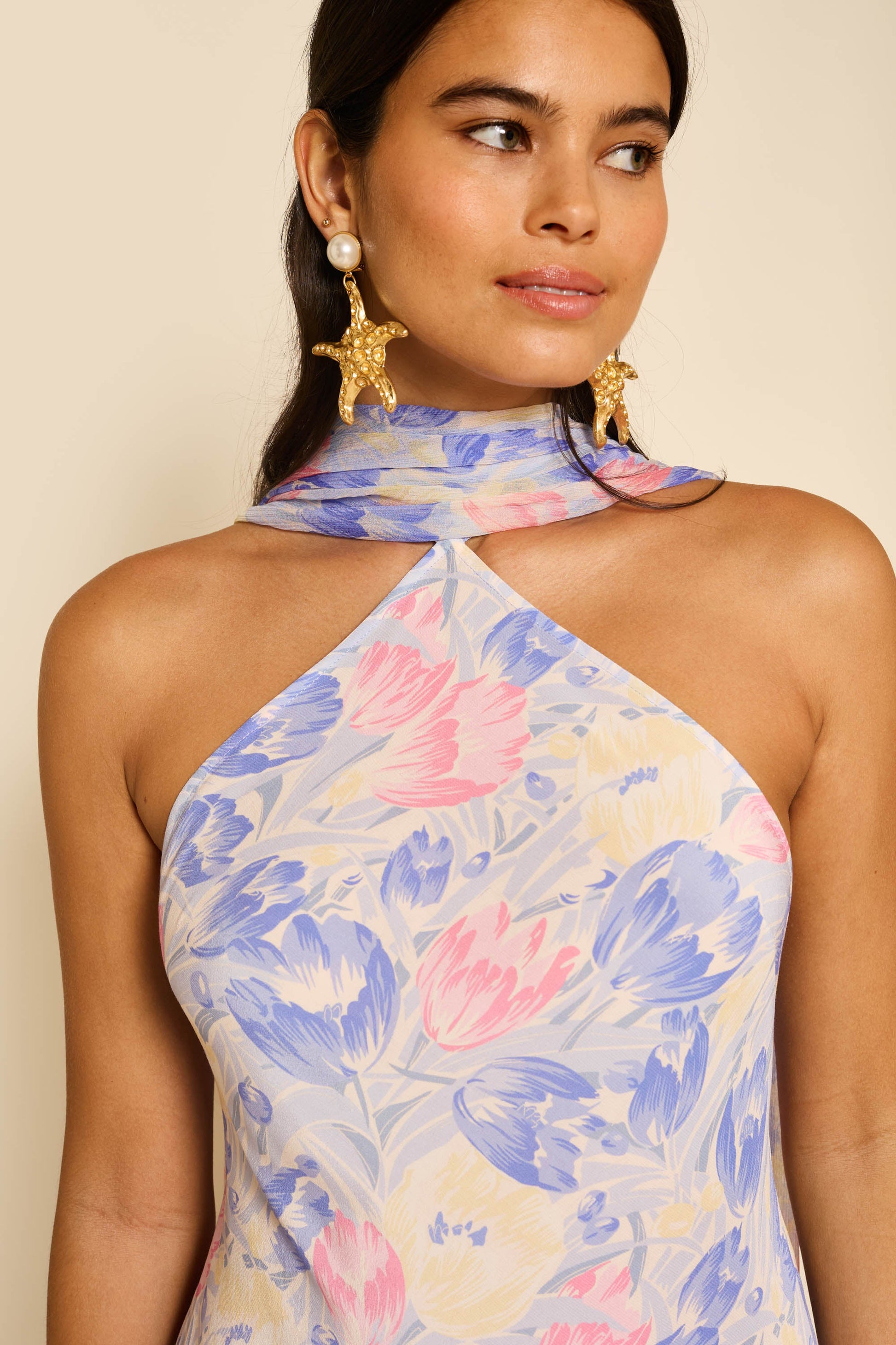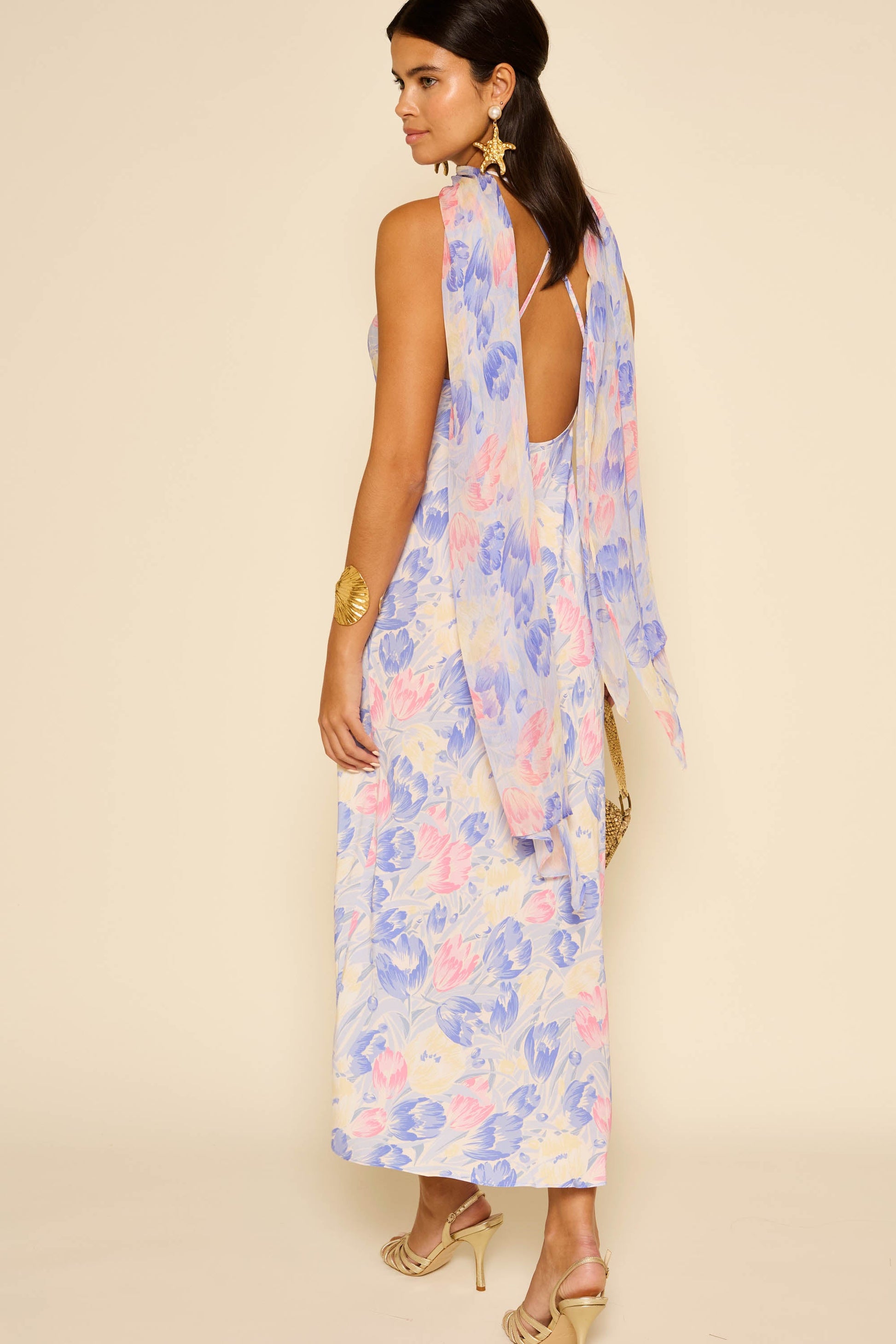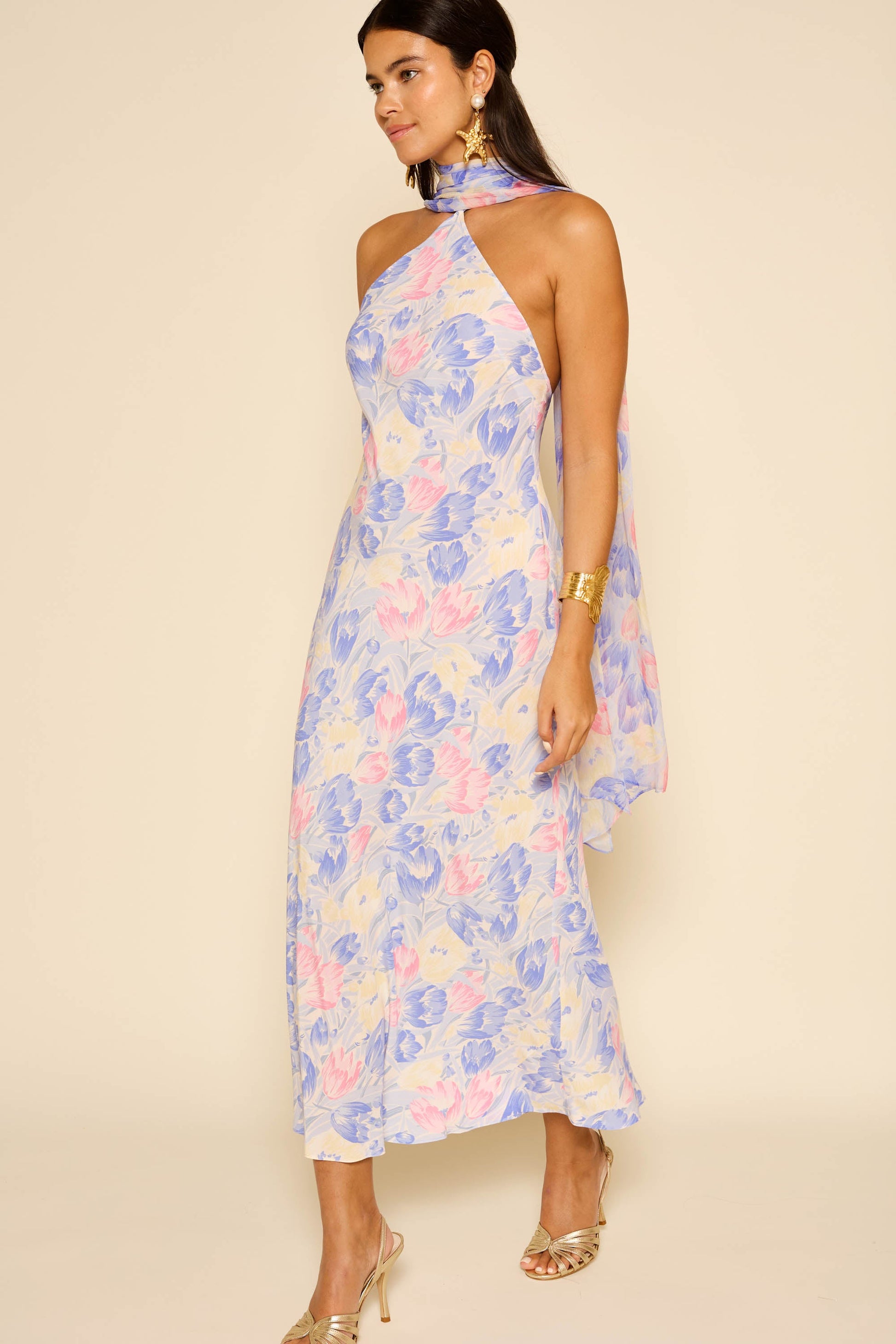Make an impression in our gorgeous Hayley dress. It's made from silk crepe de chine and comes with a detachable georgette scarf that looks so striking when it trails down the open back. The popper fastening makes it easy to remove. You may also like Ariel.