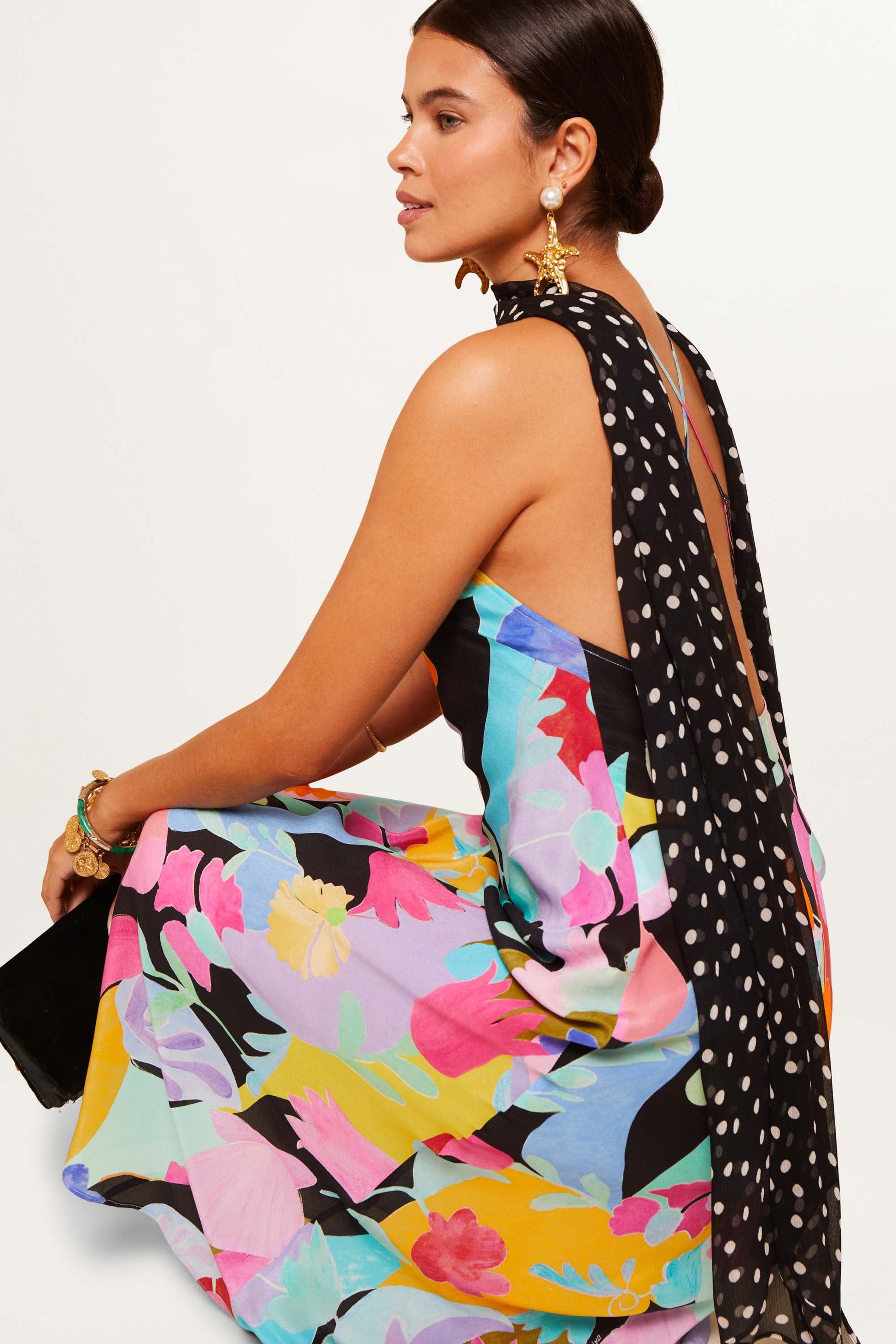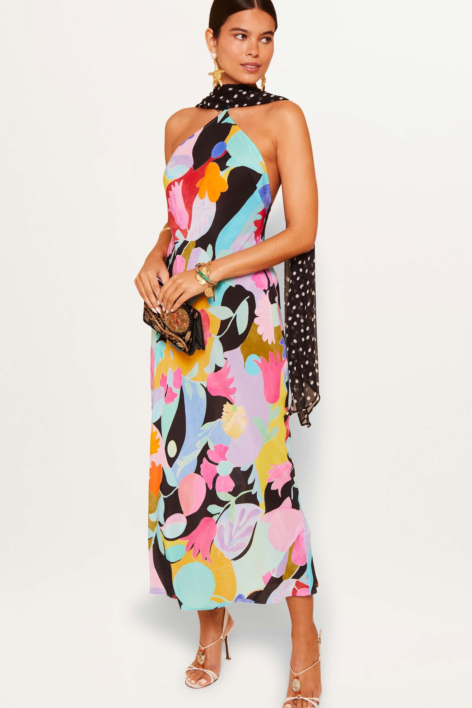 Make an impression in our gorgeous Hayley dress. It's made from silk crepe de chine and comes with a detachable georgette scarf that looks so striking when it trails down the open back. The popper fastening makes it easy to remove.