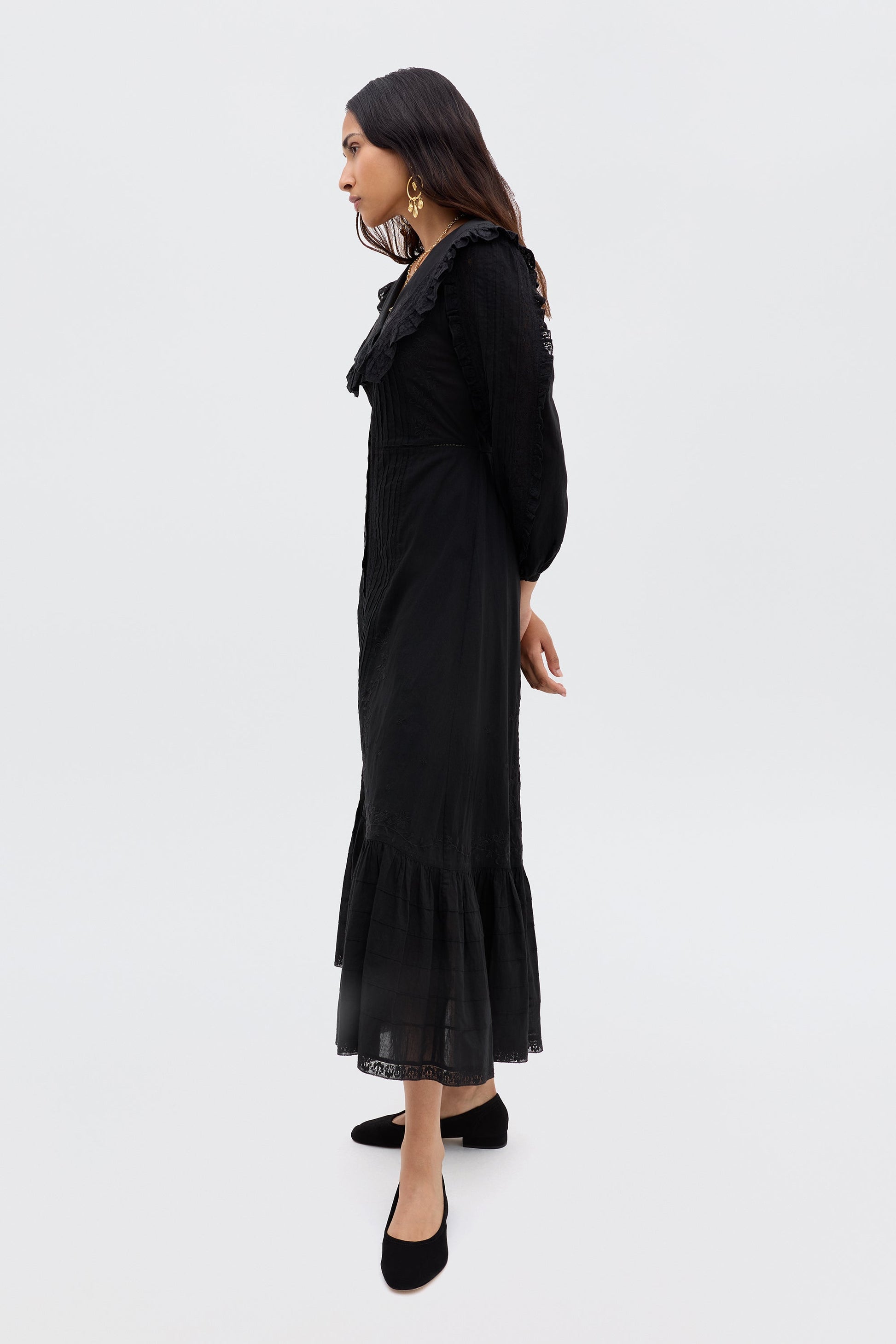 Effortlessly feminine and timeless, this Hilary dress is modelled on our bestselling Maribelle blouse. It's made from breezy cotton-voile with pretty lace trims and floral embroidery. Use the waist ties to adjust the shape.