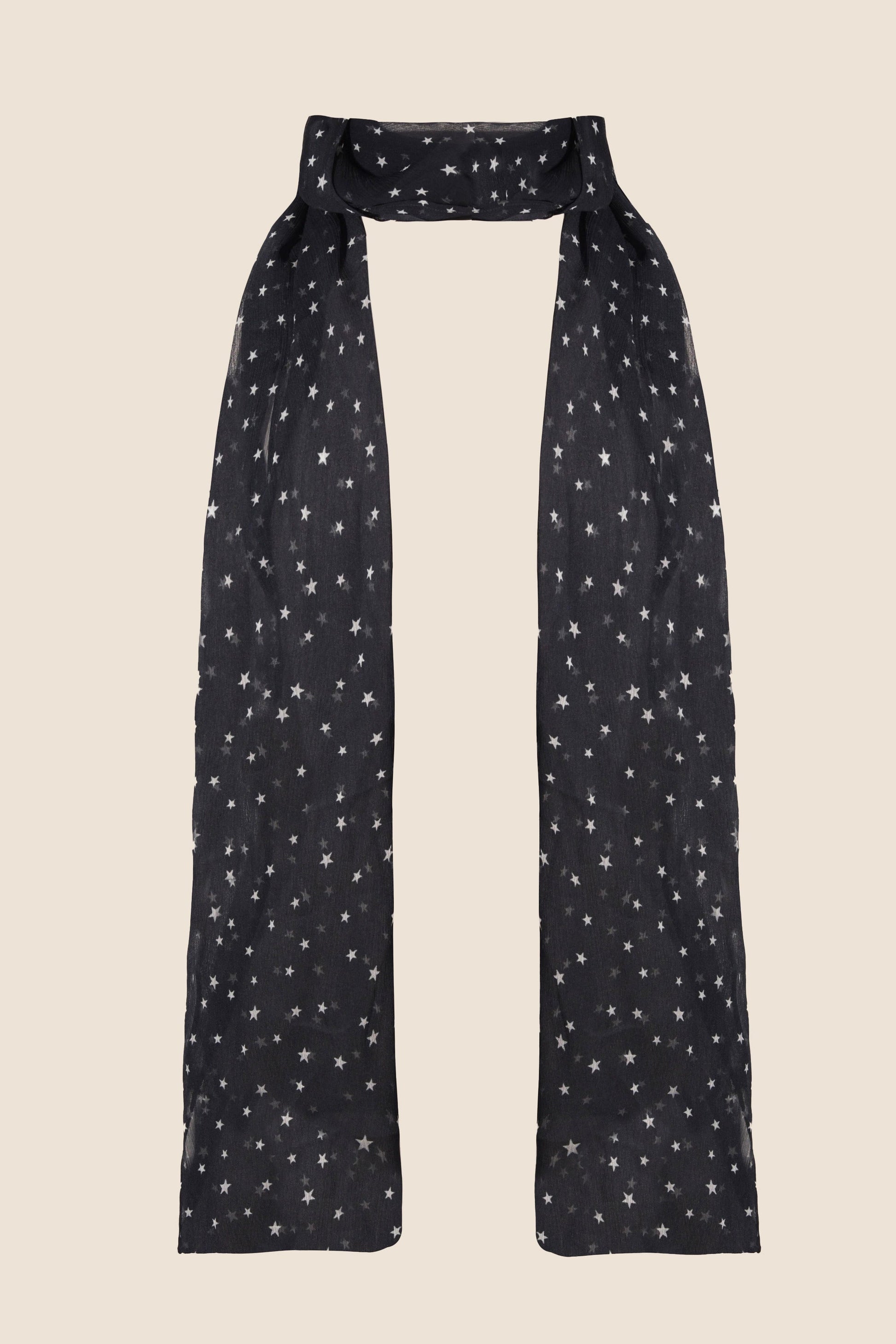 Our Julien scarf is long enough to be worn in different ways - we especially like it draped around the neck and left loose at the back. The ditsy Starry Night print goes with everything.