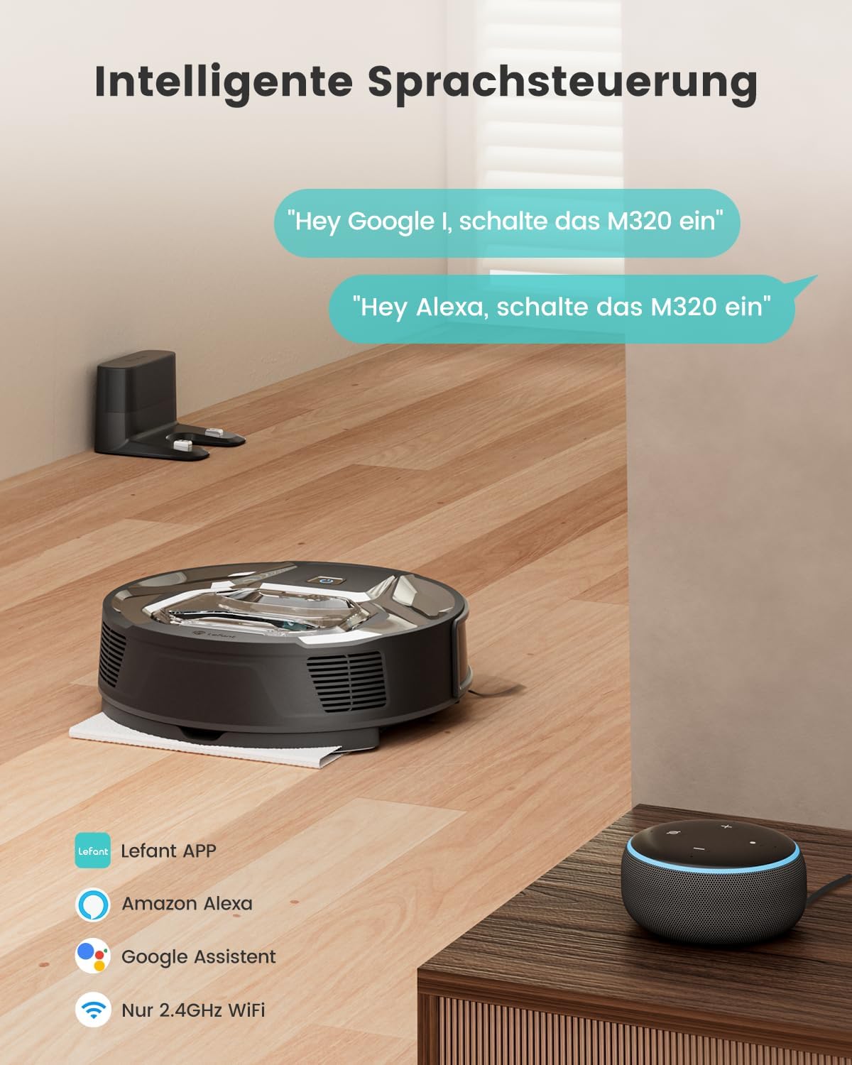LEFANT M3 Gen2 Saugroboter mit Wischfunktion, 12000âŻPa Saugleistung, Automatische Staubentleerung, LiDAR Navigation, Teppicherkennung, Freemove 3.0 App & Sprachsteuerung, 8 Wochen Hands-Free Reinigung