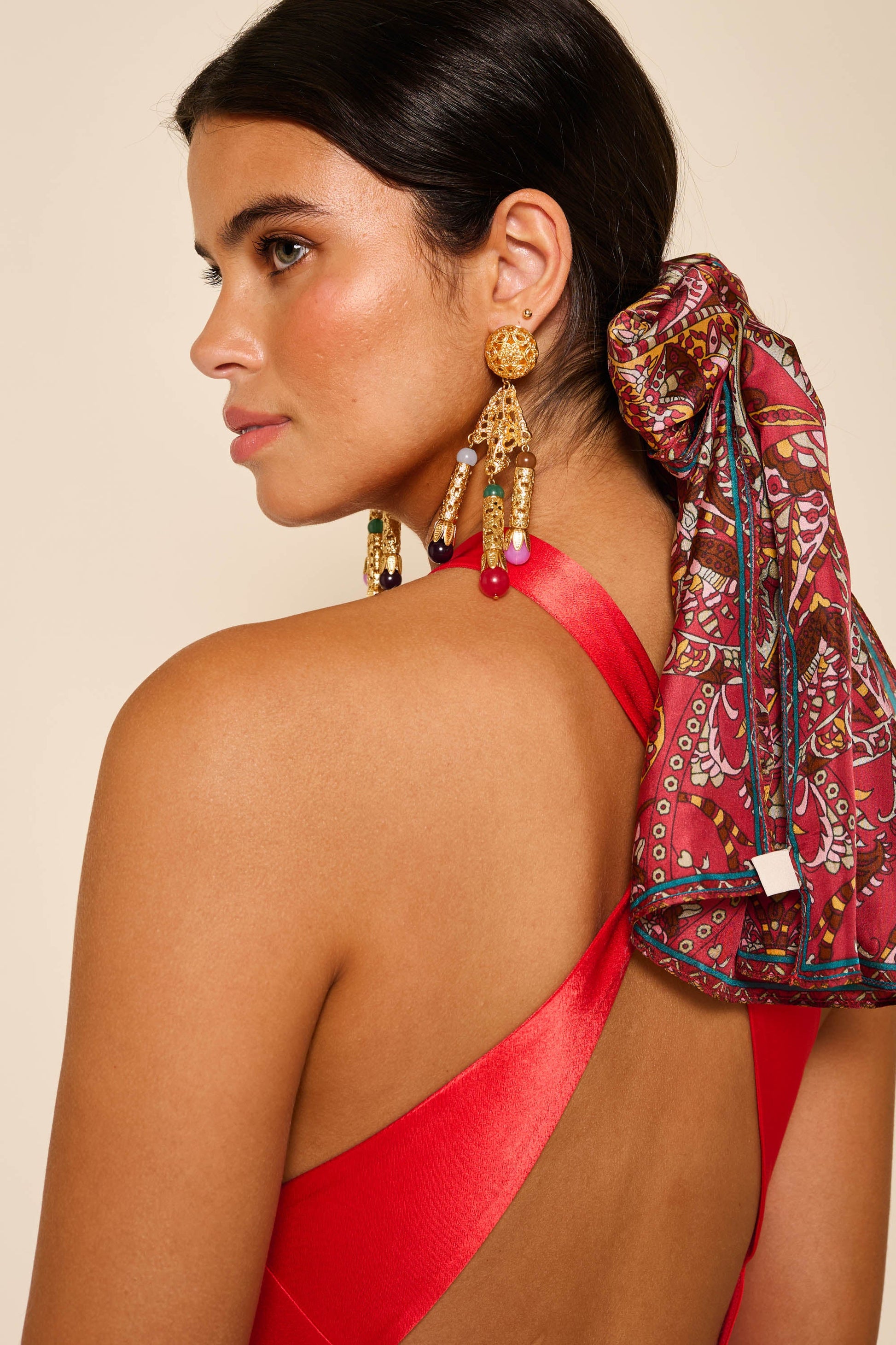 Few things make more of a statement than a red dress. This Losanna one is made from satin that skims the body and crosses over at the open back, above a row of buttons.