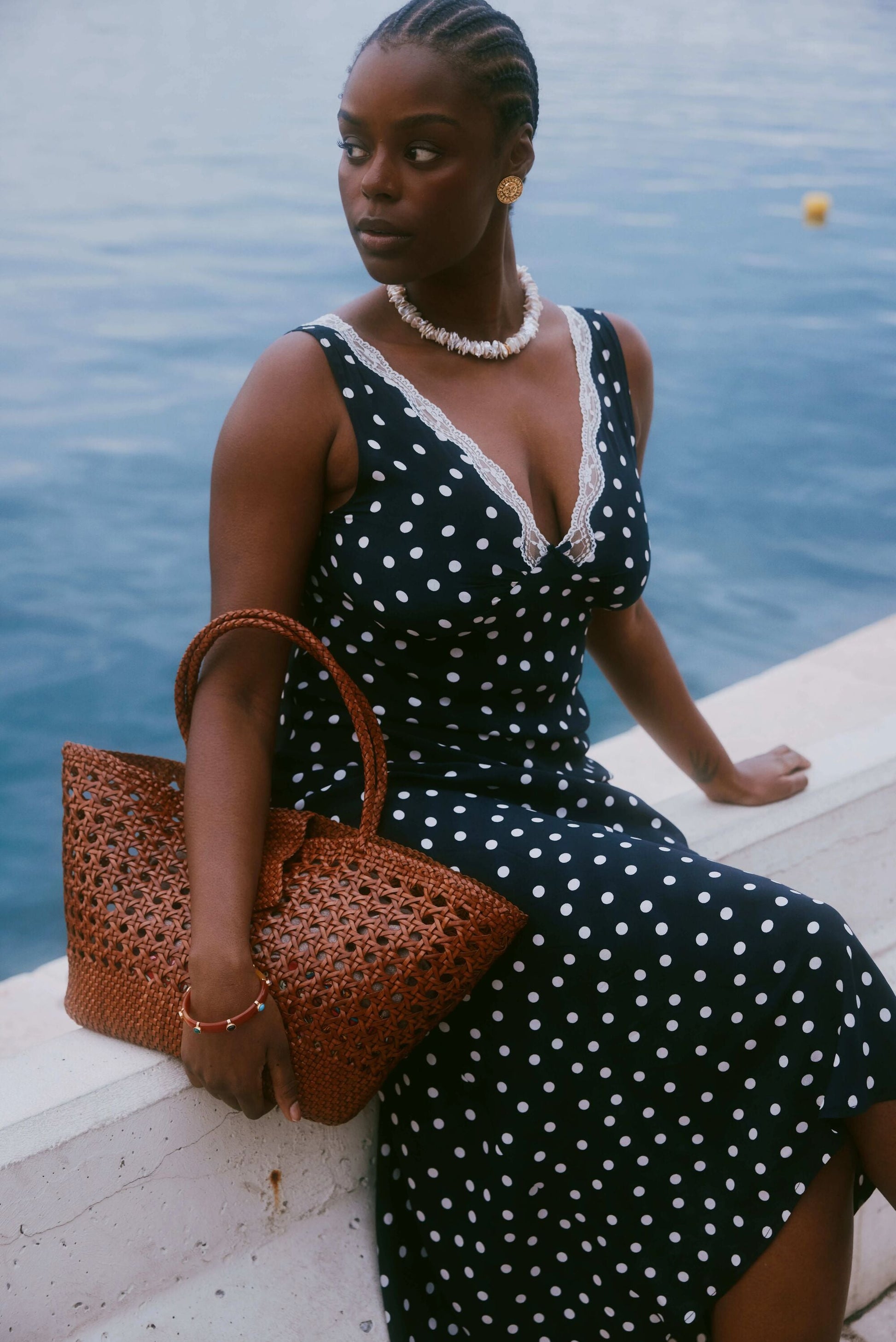 The shape of this Lucine bag is inspired by a vintage design we loved. From our collaboration with Dragon Diffusion, it’s woven from leather and topped with a flap to secure your belongings.