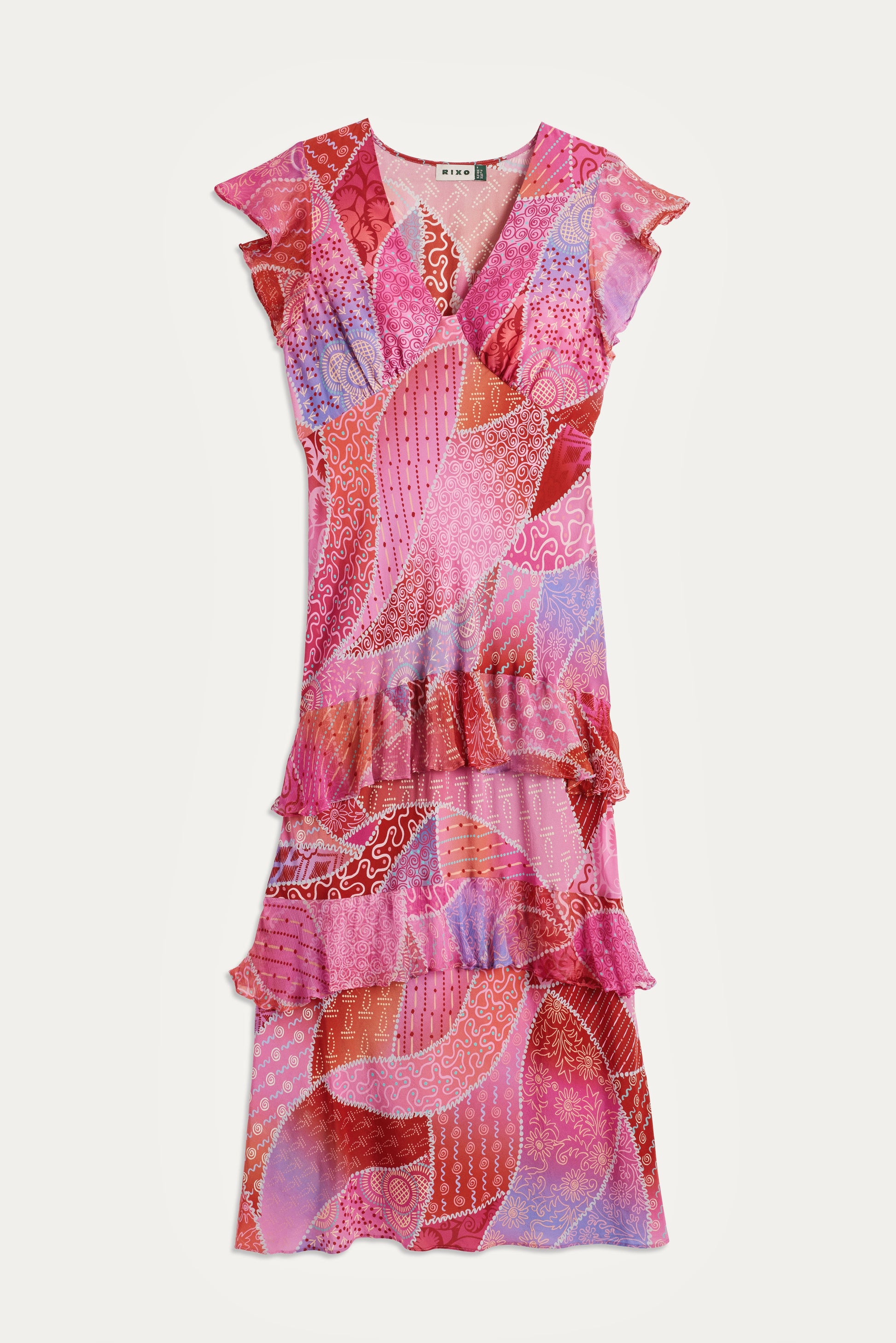 This Meena dress combines features from bestselling RIXO dresses to create a whole new silhouette. It's made from silk with floaty crinkled-georgette ruffles and ties at the waist.