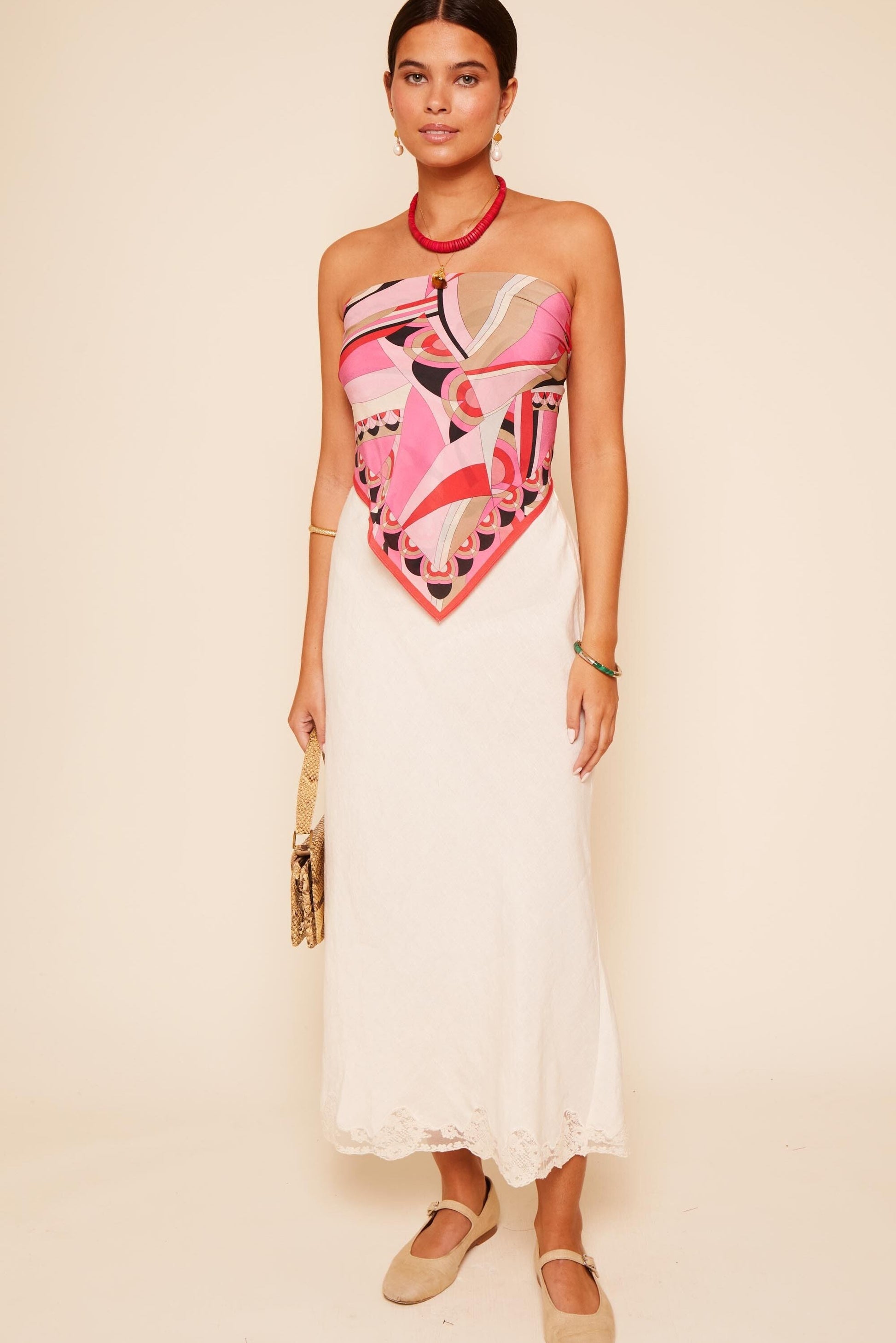 Style this silk Menno scarf as a top or use it as a finishing touch to your outfit. Loop it around your neck, tie it in your hair or knot it to your bag.
