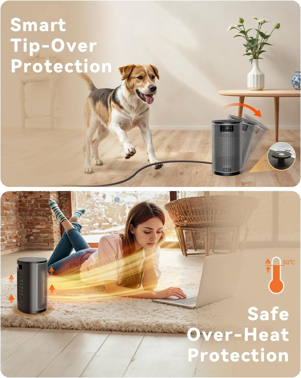 - Sofortige Wärme in 2 Sekunden - Der PALINTH Heizstrahler nutzt fortschrittliche 1500W PTC-Heiztechnologie in Kombination mit einem hocheffizienten Lüfter. Er liefert sekundenschnell Wärme, wärmt Ihren Raum oder Ihr Büro effizient auf und schafft eine gemütliche und komfortable Atmosphäre. Egal, ob Sie am Schreibtisch arbeiten oder im Sessel entspannen – er ist Ihr zuverlässiger Partner für wohlige Wärme.
