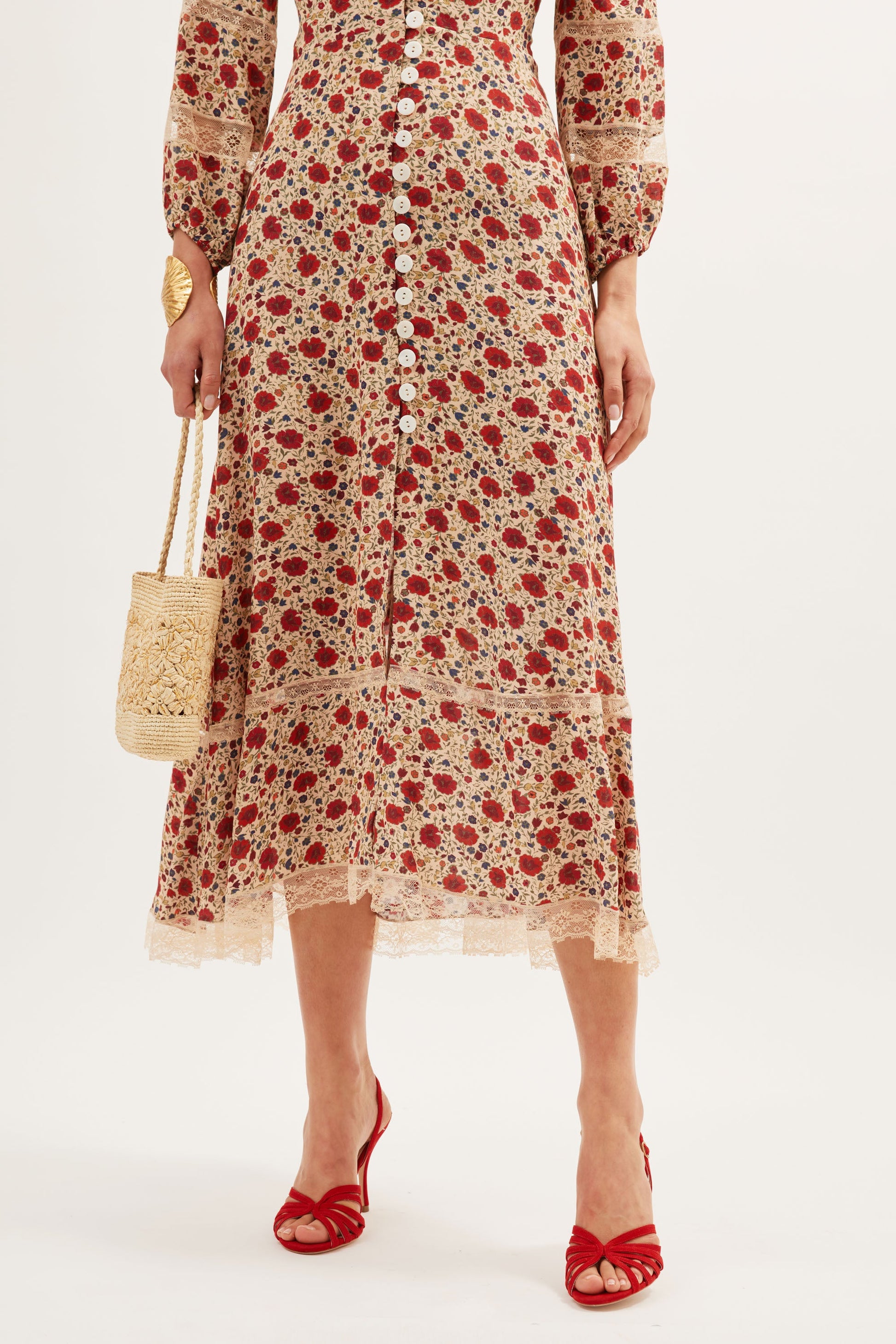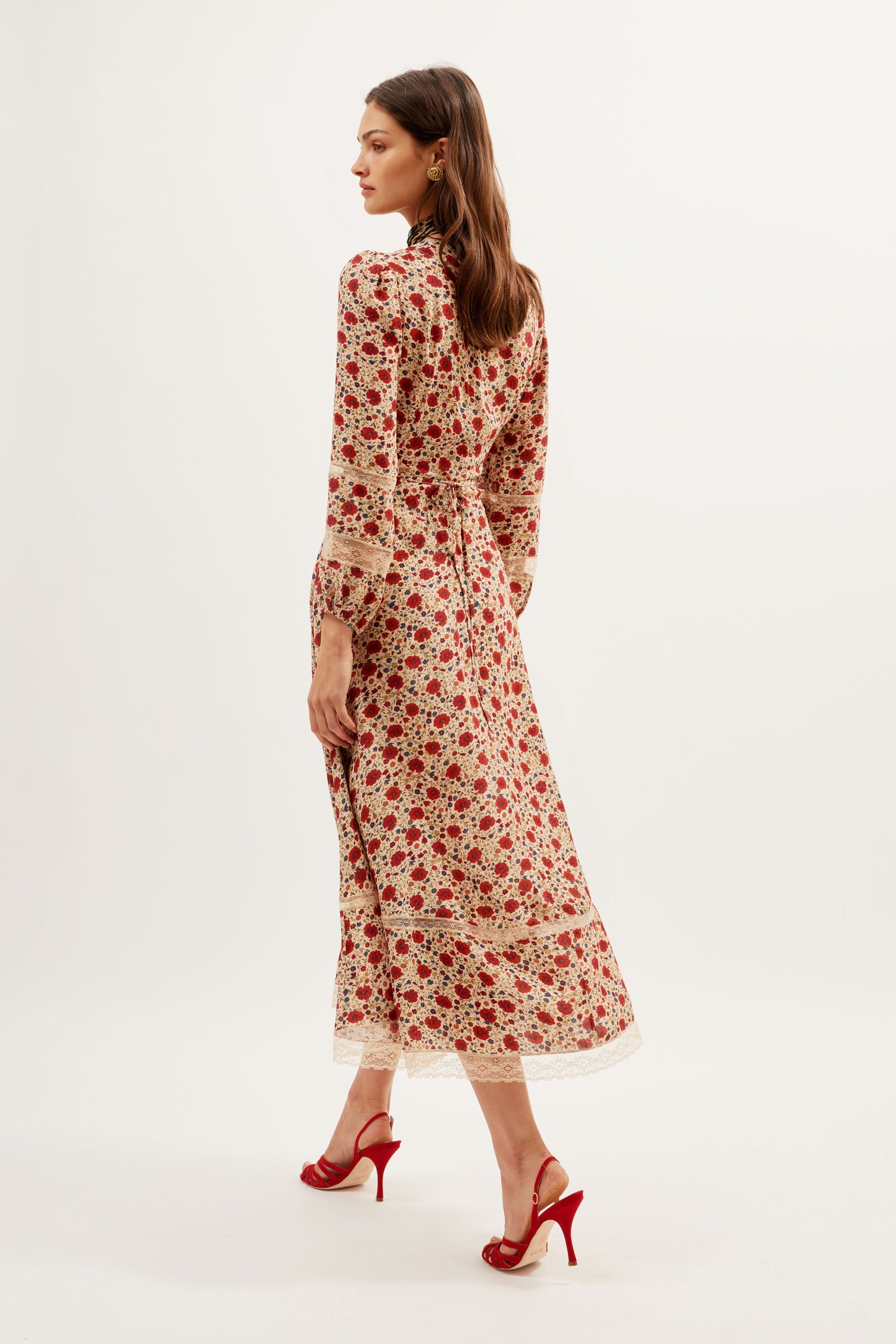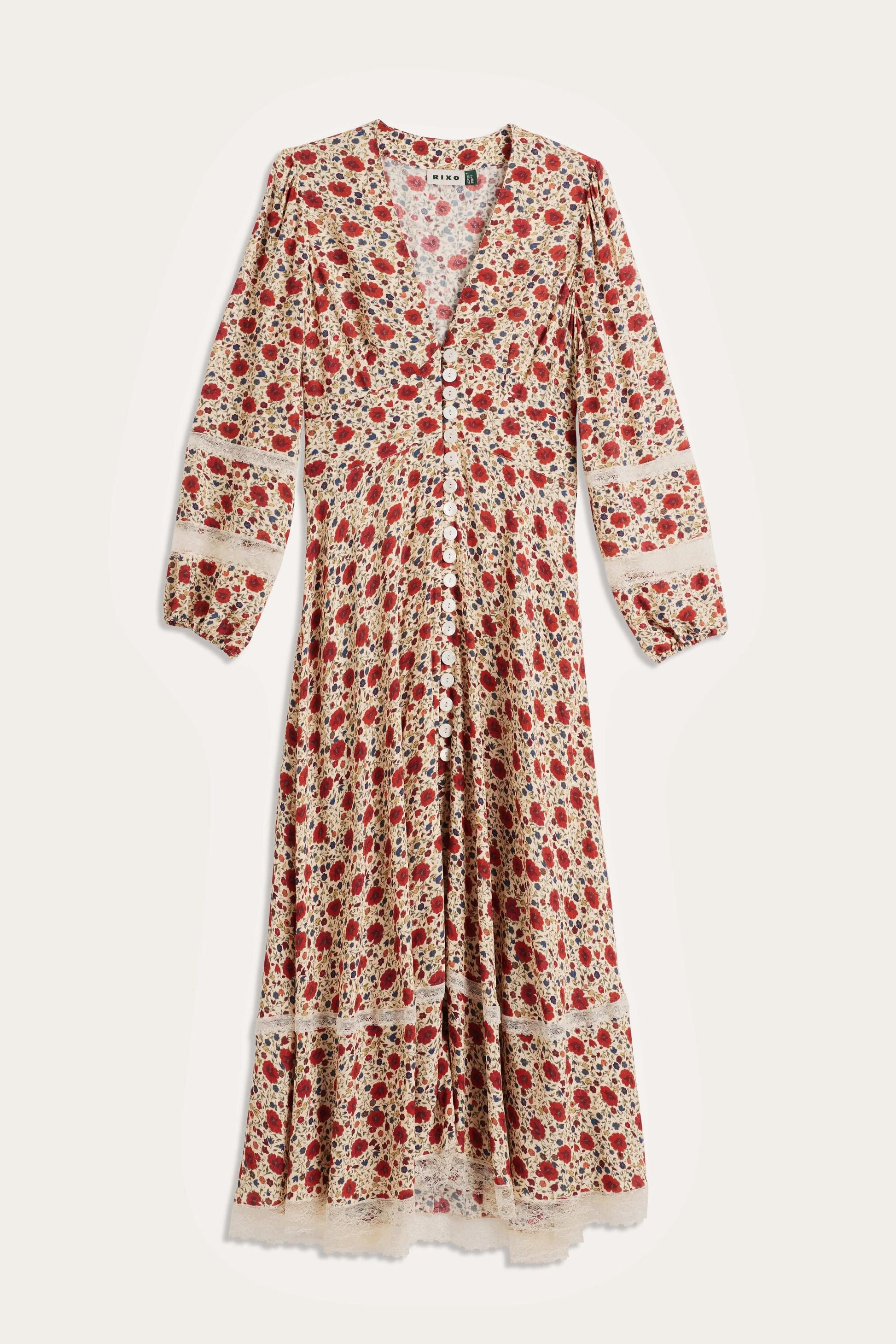 Raven is based on our Novara dress, but we've added long sleeves and delicate lace trims. The mixed prints are a RIXO signature and the mother-of-pearl buttons give such an elegant finish.