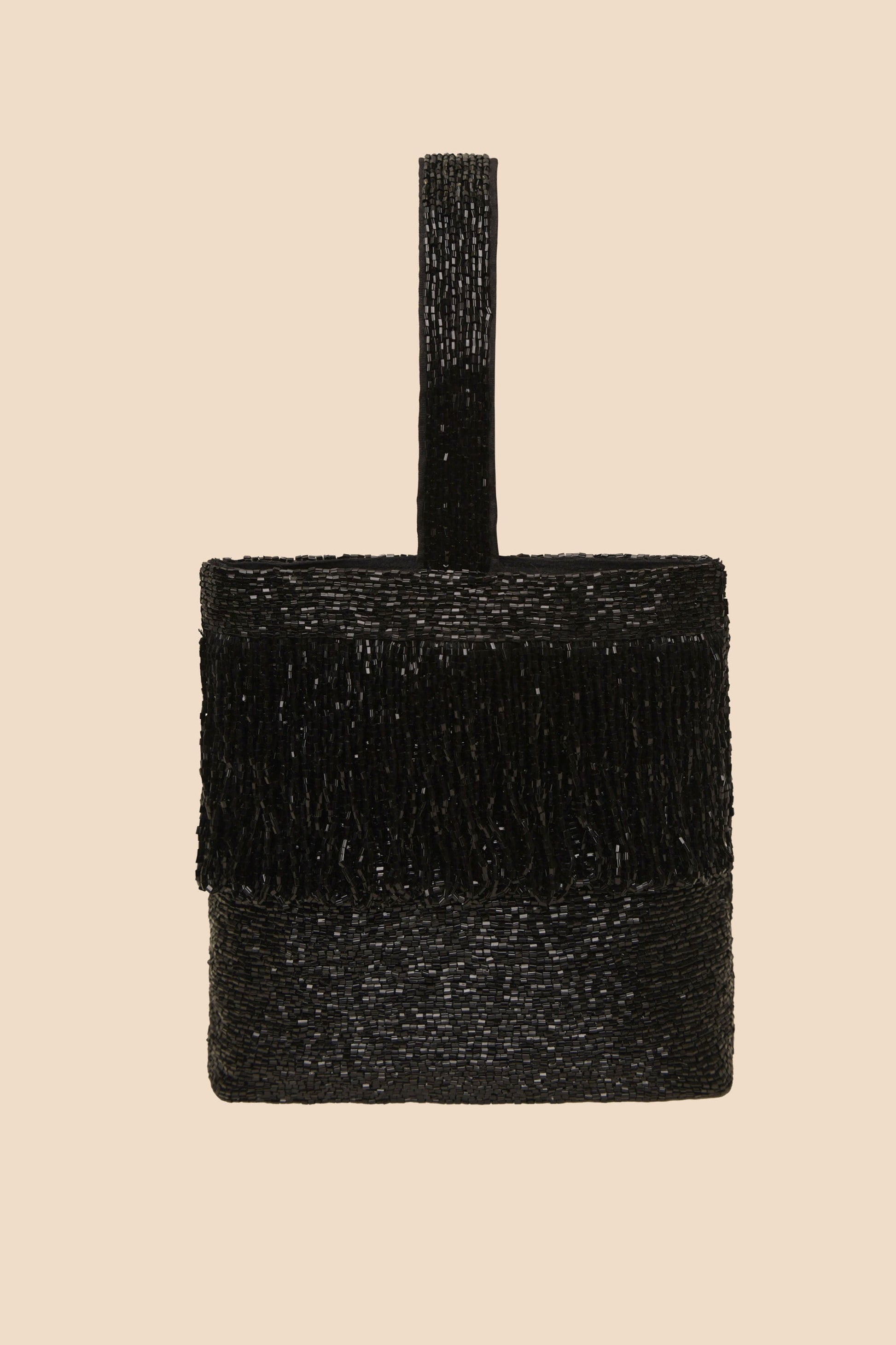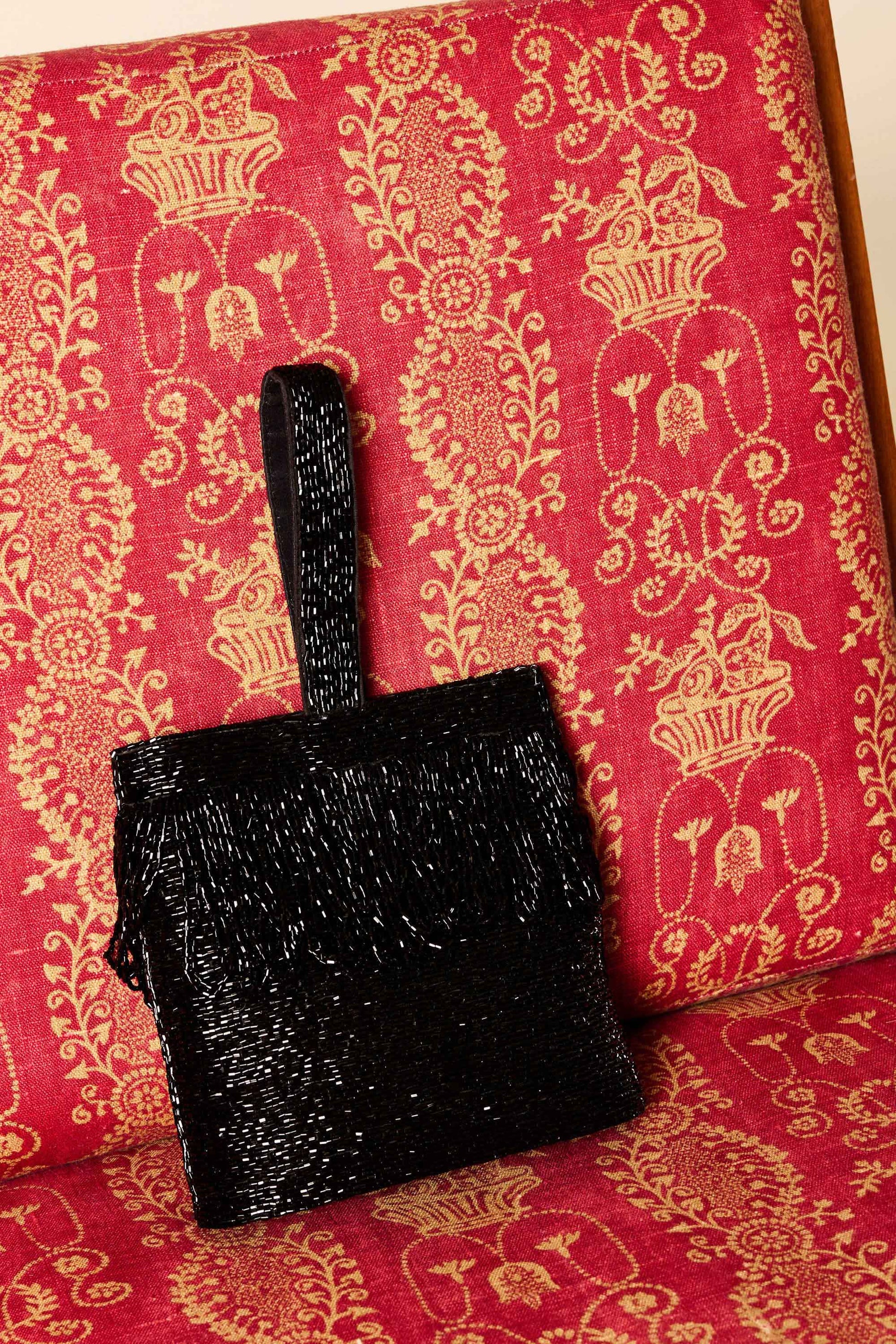 Zenni is a silk-lined, beaded occasion bag with a rounded top handle that fits comfortably on your arm.